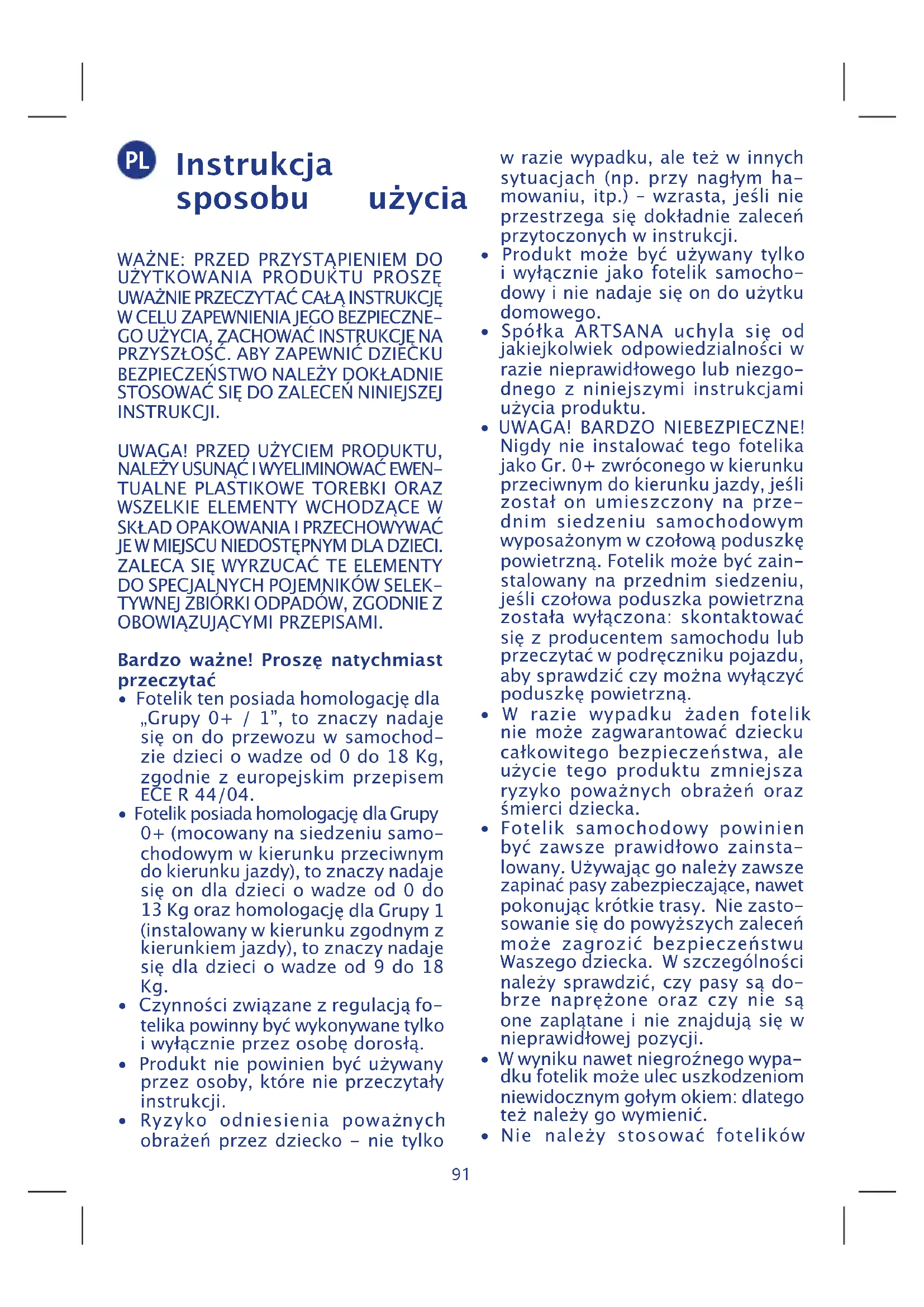 - Nie należy stosować fotelików PL92 używanych. Mogą posiadać niezwykle niebezpieczne uszkodzenia kon- strukcyjne niewidoczne gołym okiem, uniemożliwiające bezpieczne użycie produktu.