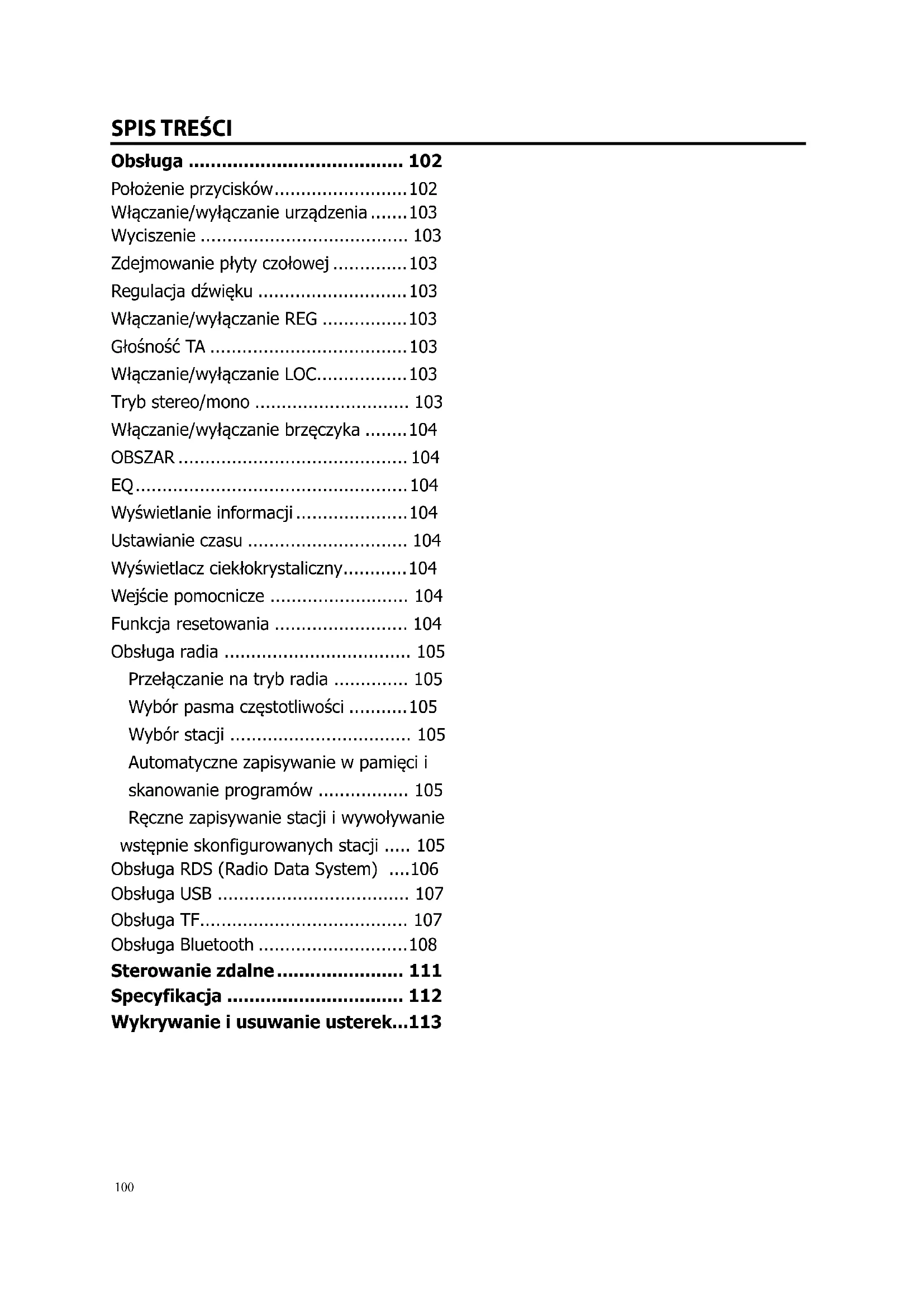 - Obsługa RDS (Radio Data System) p. 106