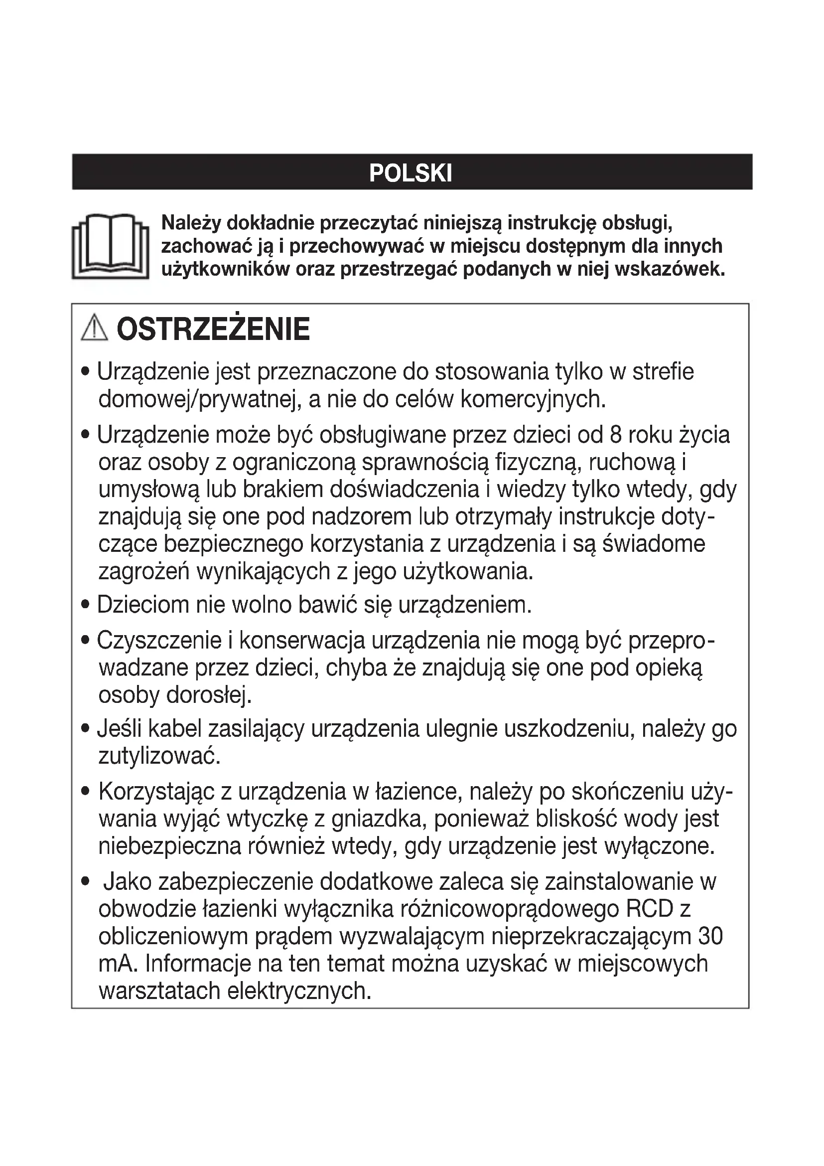 - Korzystajac z urzadzenia włazience, naleź y po skończeni uzywania wyjadć wtyczkte z gniażdka, poniewaź bliskość wody jest niebeźpieczna równieź wtedy, gdy urzadzenia jest wyłączone.