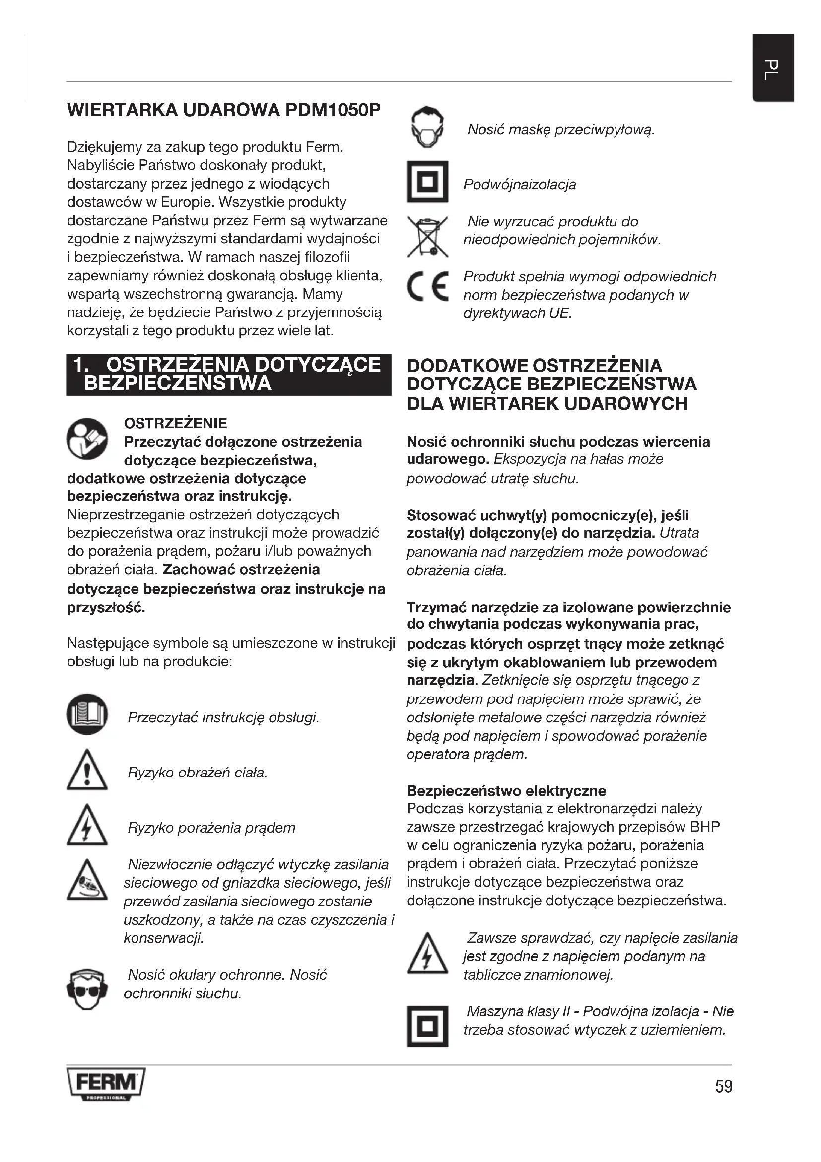 INSTRUKCJA OBSŁUGI PDM1050P Ferm