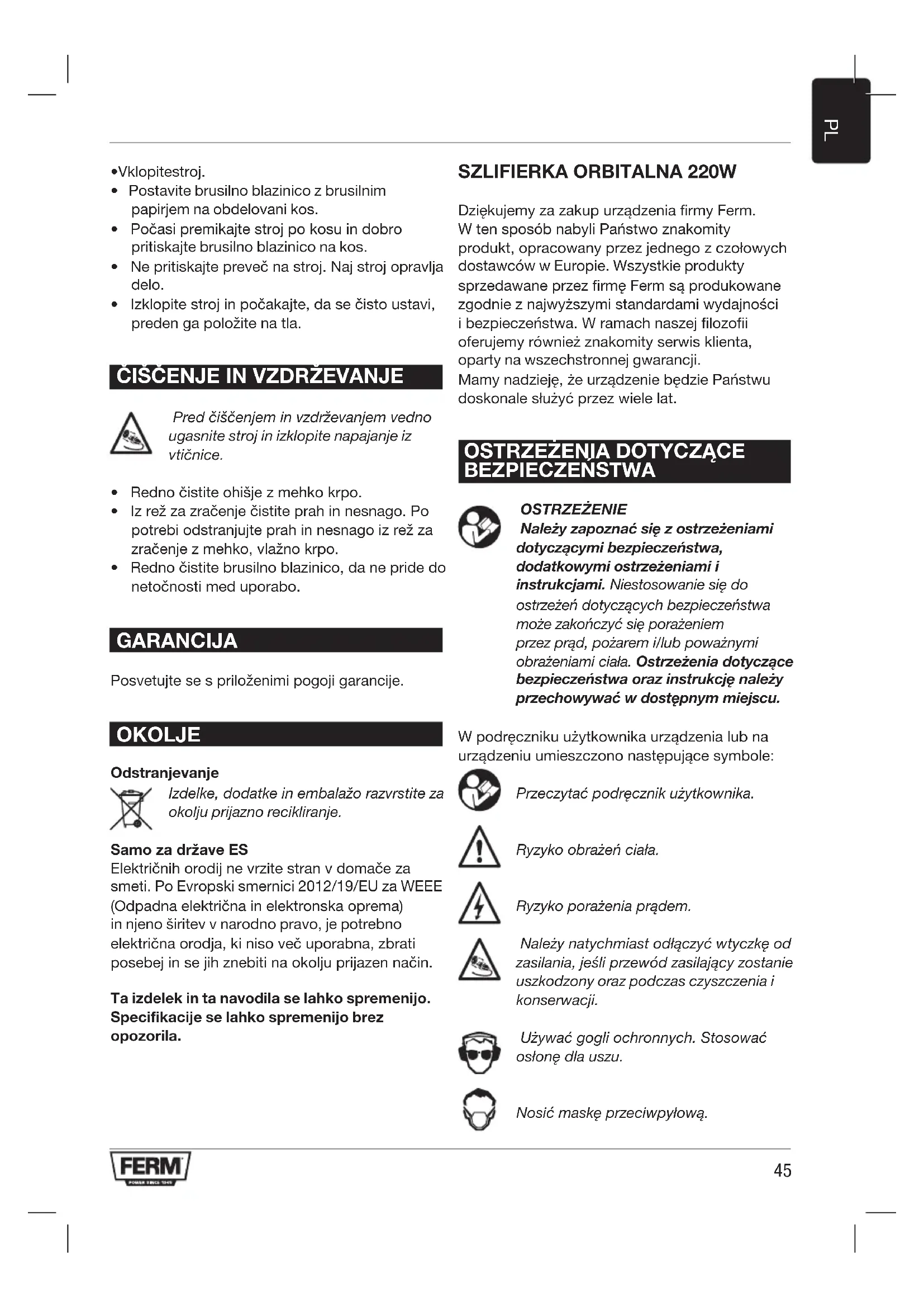 - Regularnie czyścić podkładkę szlifującą, aby unikać niedokładności podczas pracy. GWARANCJA Należy zapoznać się z dołączonymi warunkami gwarancji.48