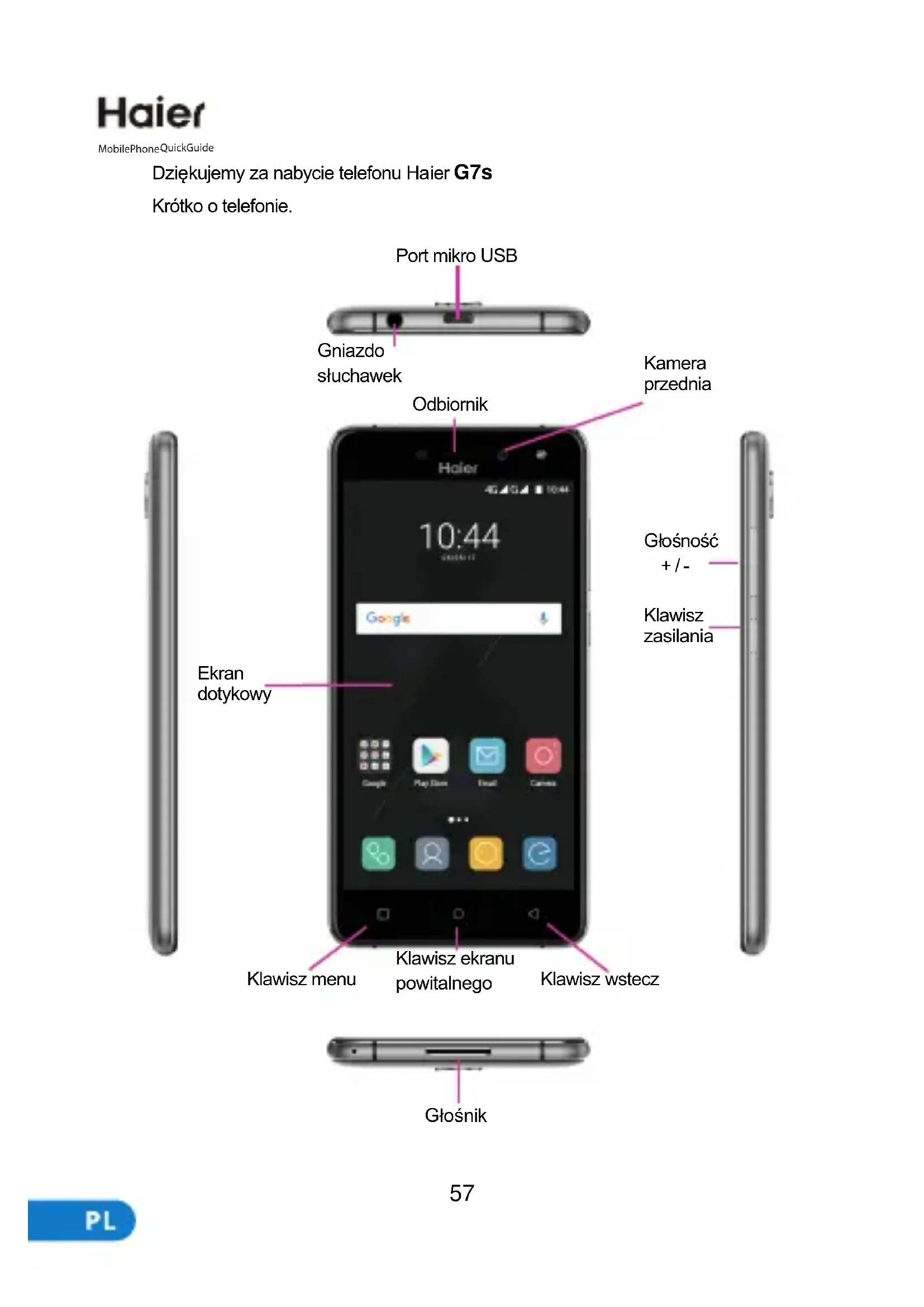 MobilePhone-QuickGuide LichaamDziękujemy za nabycie telefonu Haier Krótko o telefonie.