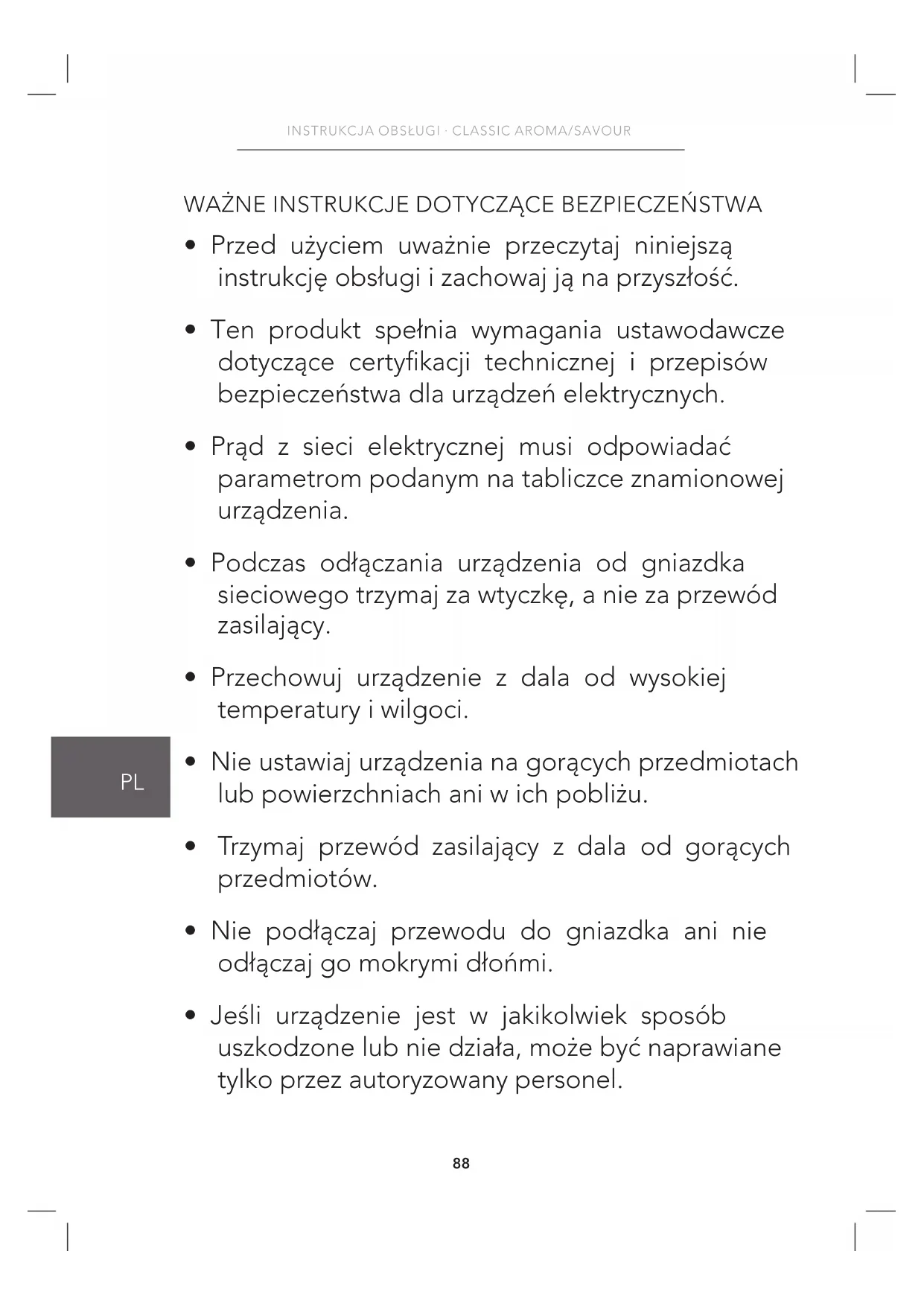 - Jeśli urządzenie jest w jakikolwiek sposób uszkodzone lub nie działa, może być naprawiane tylko przez autoryzowany personel.89