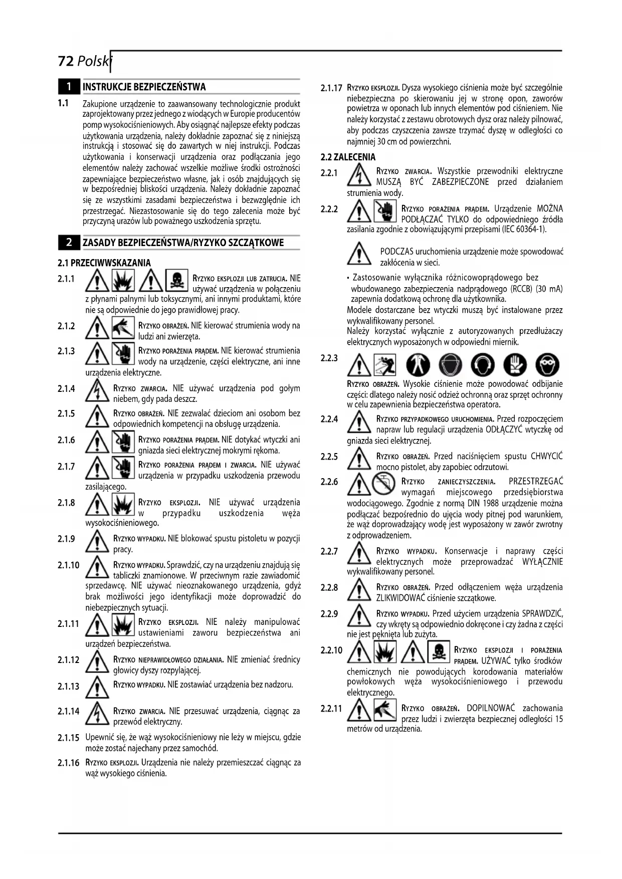 Zakupione urządzenie to zaawansowany technologicznie produkt zaprojektowany przez jednego z wiodących w Europie producentów pomp wysokociśnieniowych. Aby osiągnąć najlepsze efekty podczas użytkowania urządzenia, należy dokładnie zapoznać się z niniejszą instrukcją i stosować się do zawartych w niej instrukcji. Podczas użytkowania i konserwacji urządzenia oraz podłączania jego elementów należy zachować wszelkie możliwe środki ostrożności zapewniające bezpieczeństwo własne, jak i osób znajdujących się w bezpośredniej bliskości urządzenia. Należy dokładnie zapoznać się ze wszystkimi zasadami bezpieczeństwa i bezwzględnie ich przestrzegać. Niezastosowanie się do tego zalecenia może być przyczyną urazów lub poważnego uszkodzenia sprzętu.
