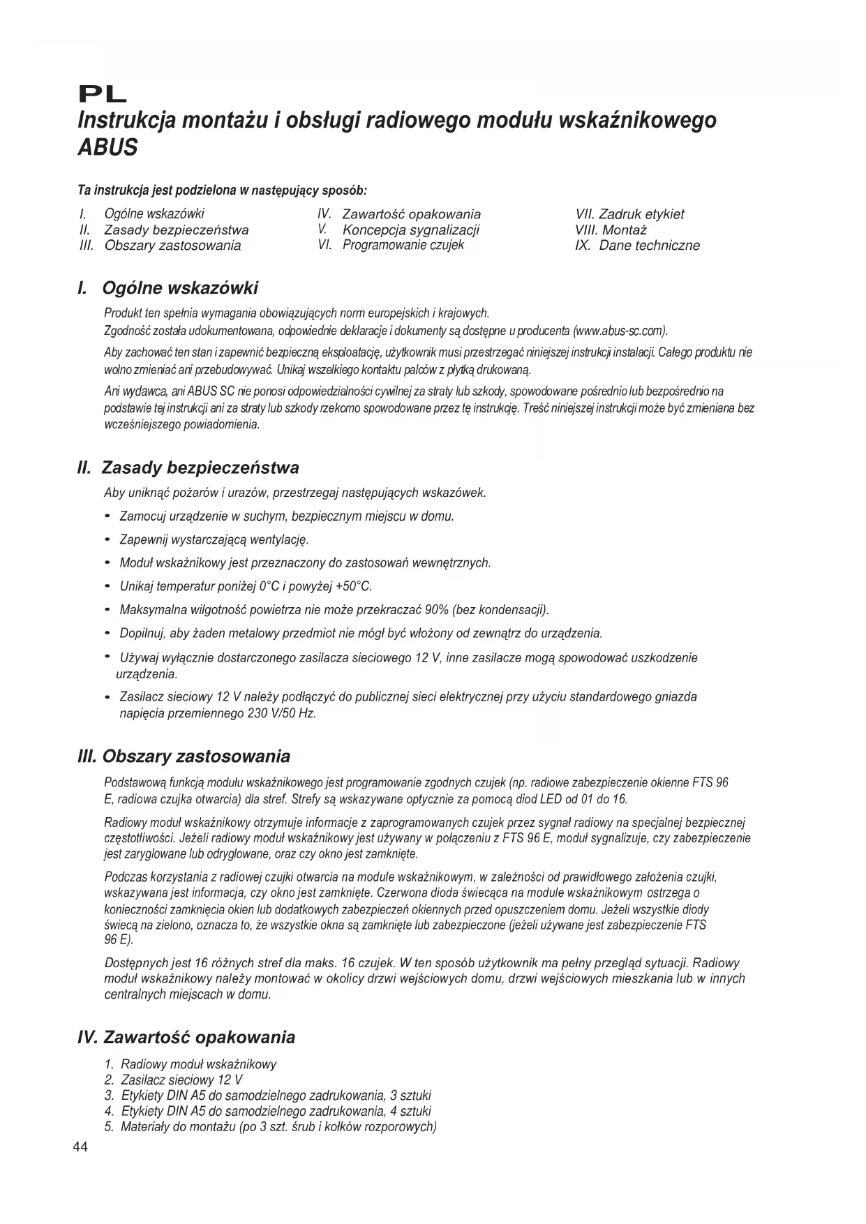Instrukcja montażu i obsługi radiowego modułu wskaźnikowego ABUS