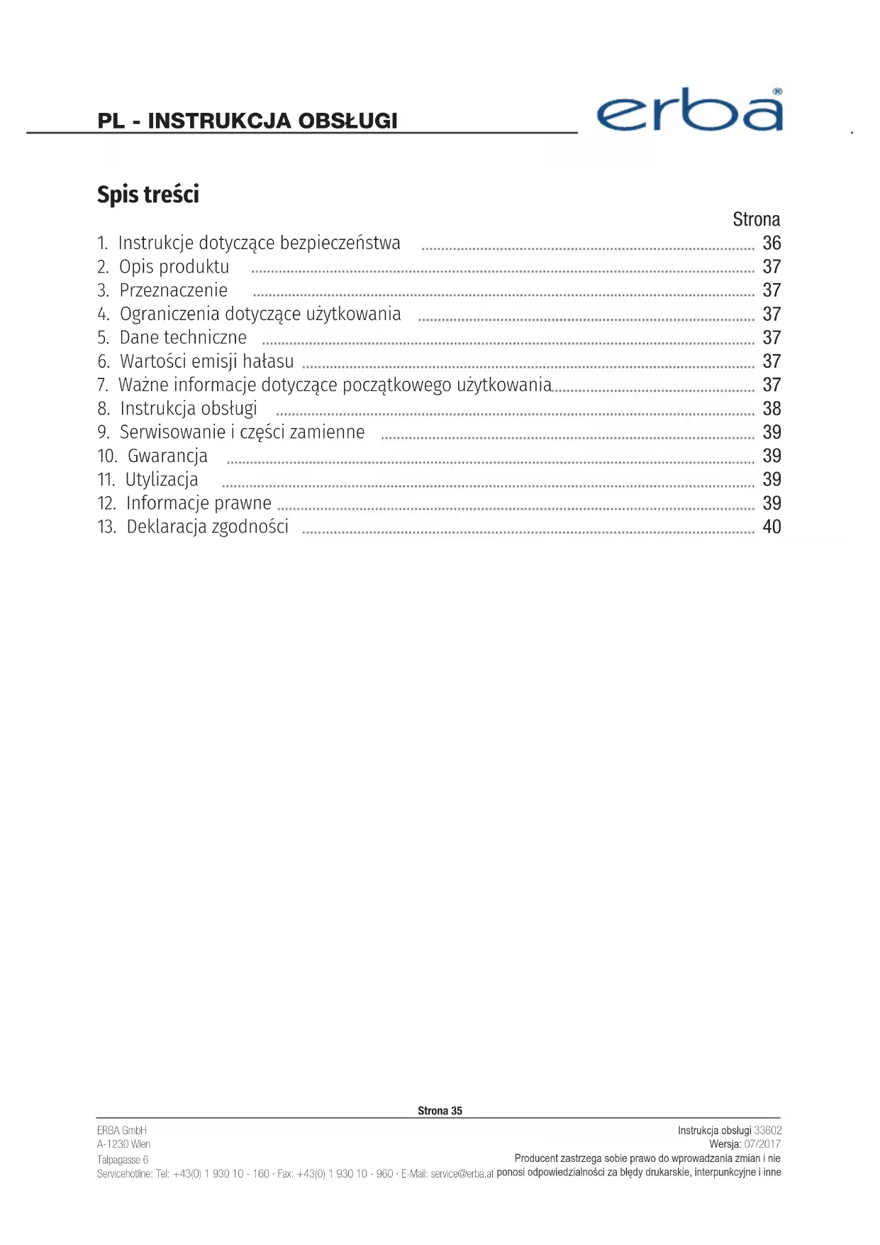 INSTRUKCJA OBSŁUGI 33602 Erba