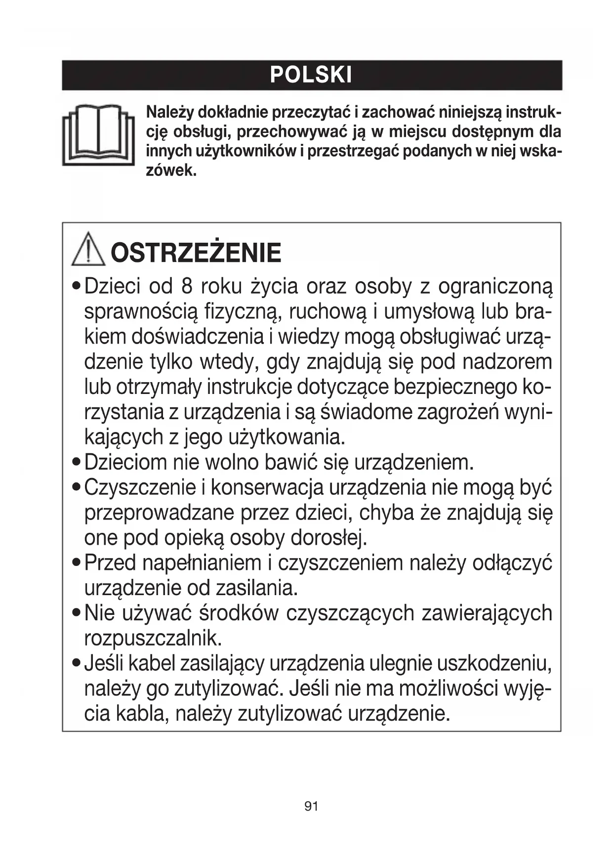 Czyszczenie i konserwacja urządzenia nie mogą być przeprowadzane przez dzieci, chyba że znajdują się one pod opieką osoby dorosłej