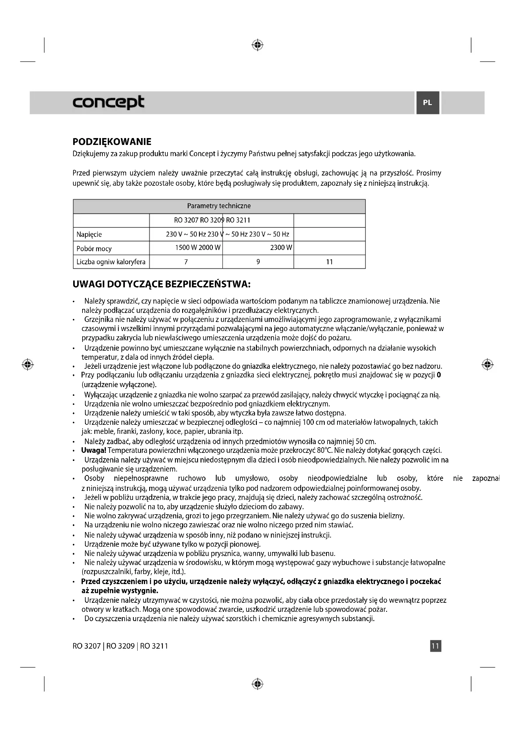 INSTRUKCJA OBSŁUGI RO3211 Concept