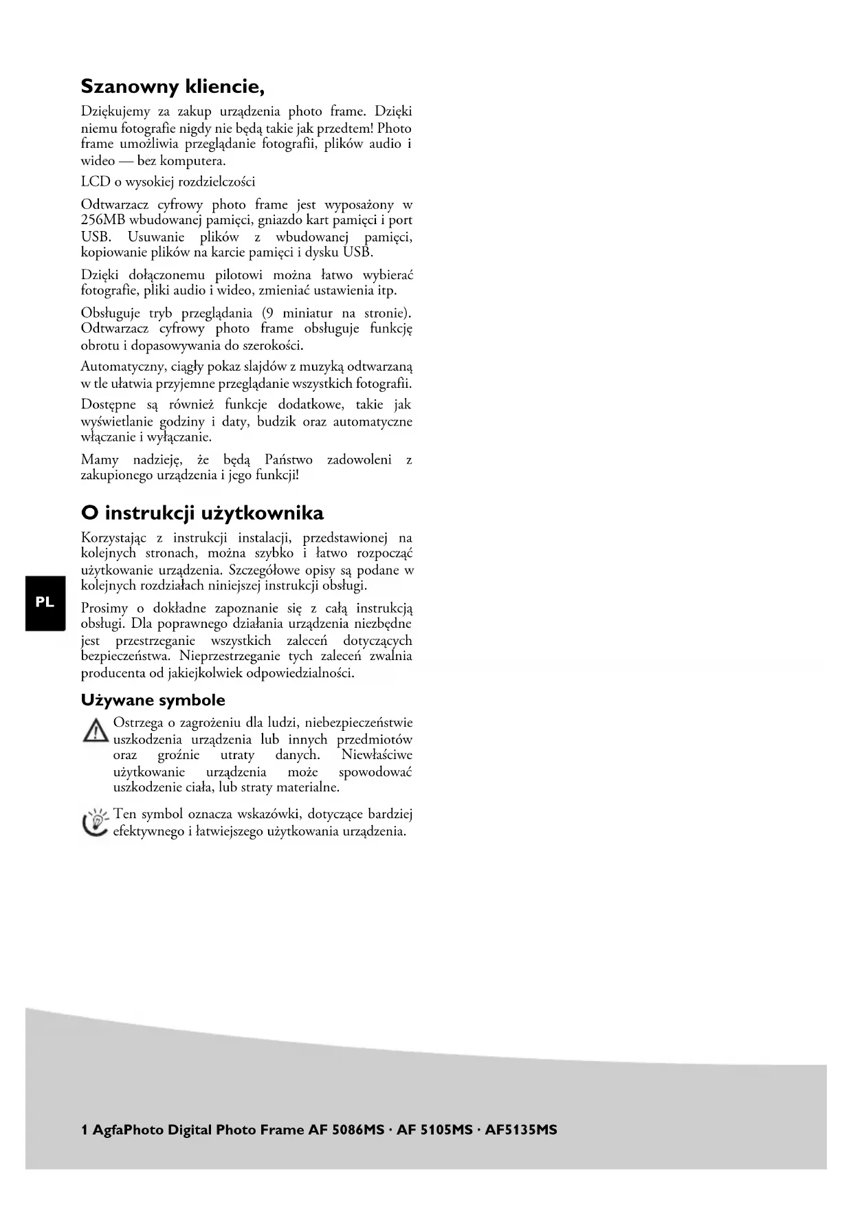 AF 5105MS - Cyfrowa ramka na zdjęcia AGFA - Bezpłatna instrukcja obsługi