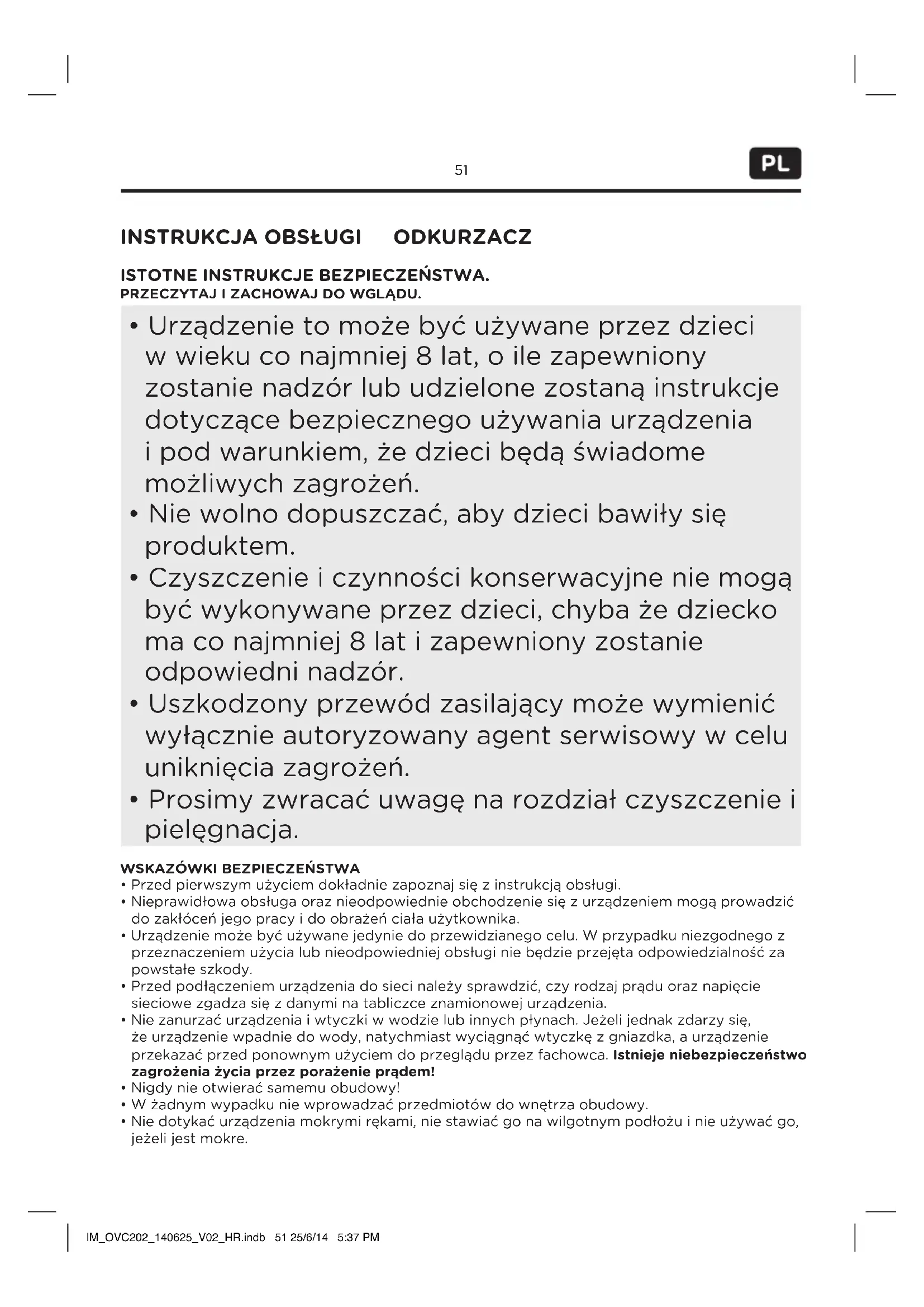 - Niedotykaćurządzeniamokrymirękami,niestawiaćgonawilgotnympodłożuinieużywaćgo, jeżelijestmokre. IM_OVC202_140625_V02_HR.indb 51 25/6/14 5:37 PM52