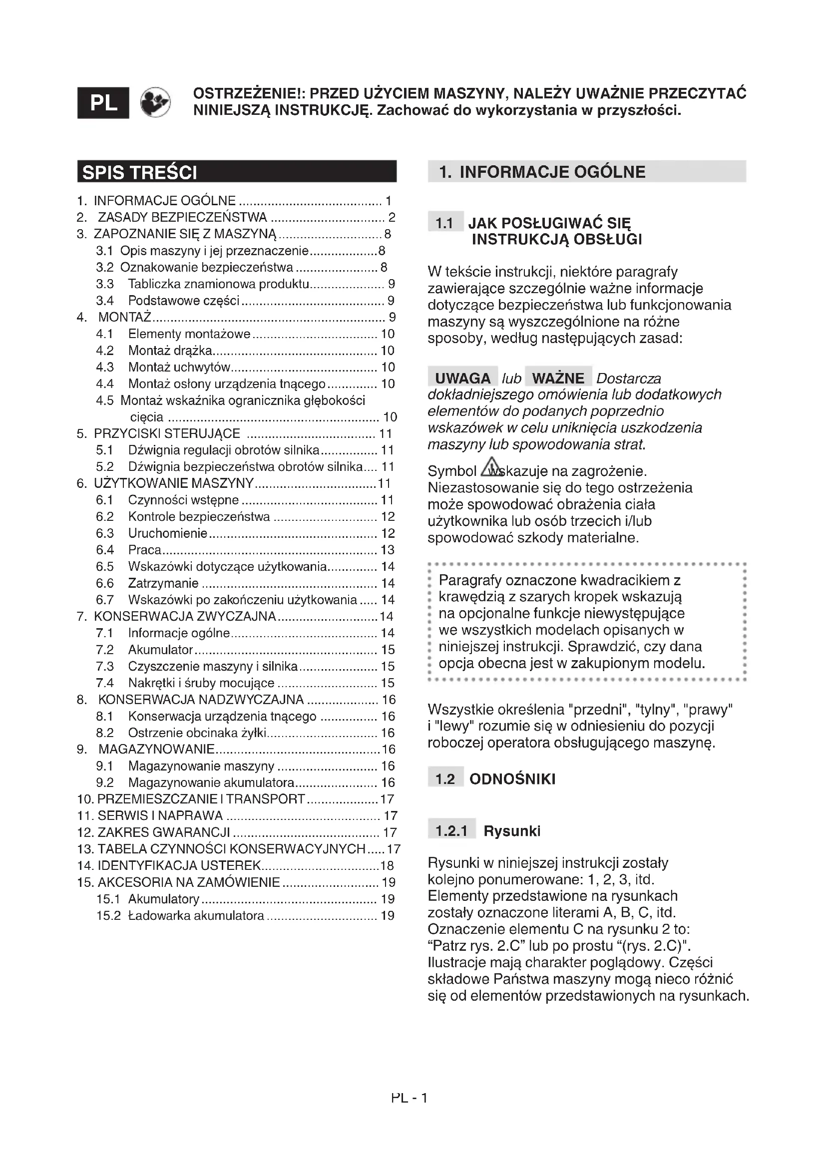 OSTRZEŻENIE: przed użyciem maszyny, należy uważnie przeczytać niniejszą instrukcję.