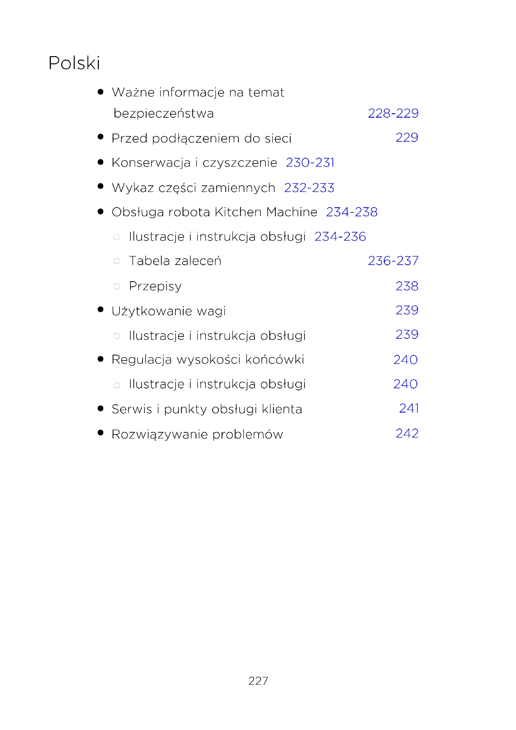 Urządzenie spełnia wymogi rozporządzenia Wspólnoty Europejskiej nr 1935/2004 dotyczącego materiałów i wyrobów przeznaczonych do kontaktu z żywnością.230 Konserwacja i czyszczenie