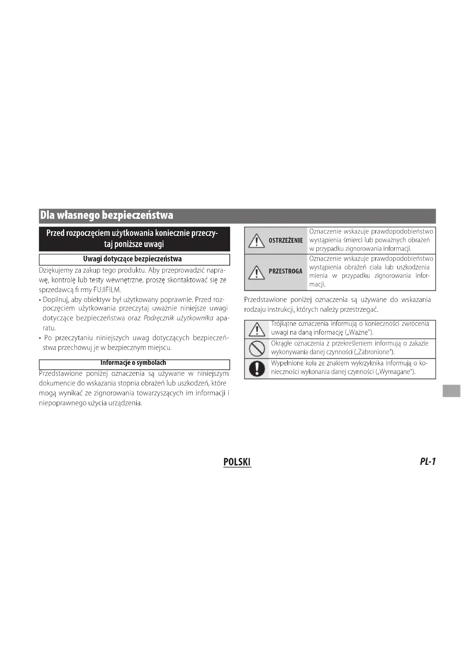 Dziekujemy za zakup tego produktu. Aby przypegowadzic naprawe, kontrole lub testy wewnetrzne, prosze skontaktowac sie ze sprzedawca firmy FUJIFILM.