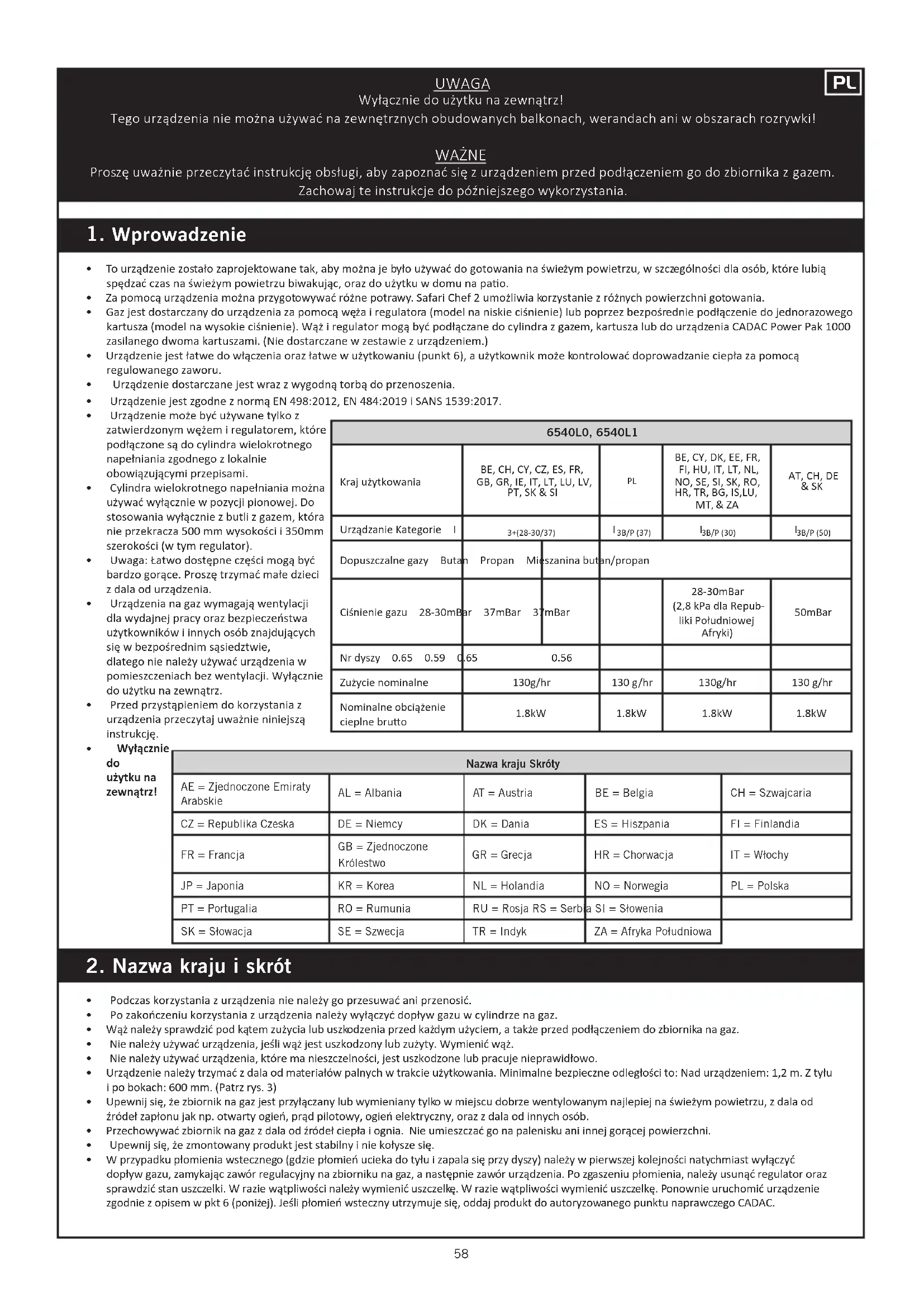 - Urzędzenia na gaz wymagaju wentylaci dla wydajnej przyazbepieczność uzytkowników innych/mapsznajdujczych sie w bezposrechnim sąsiedztwie, dlągość na noblezy uzywać urzędzenia w pomieszczeniach bez wentylaci. Wymiarcznie do uzytku na zewnatrz.