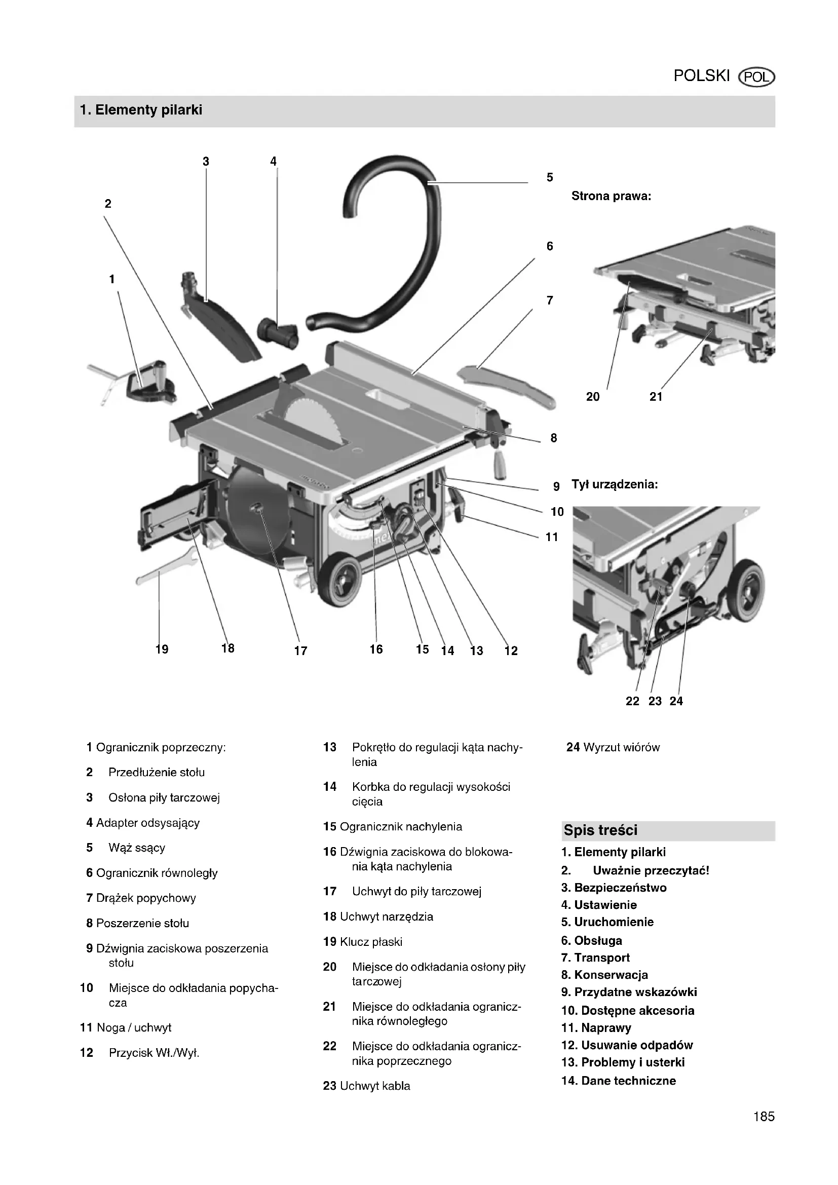 rcz owej 21 Miejsce do odkładania ogranicz- nika równoległego 22 Miejsce do odkładania ogranicz- nika poprzecznego23 Uchwyt kabla24 Wyrzut wiórów Spis treści 17028992_10_TS254_pl.fm Oryginalna instrukcja obsługi POLSKIPOLSKI