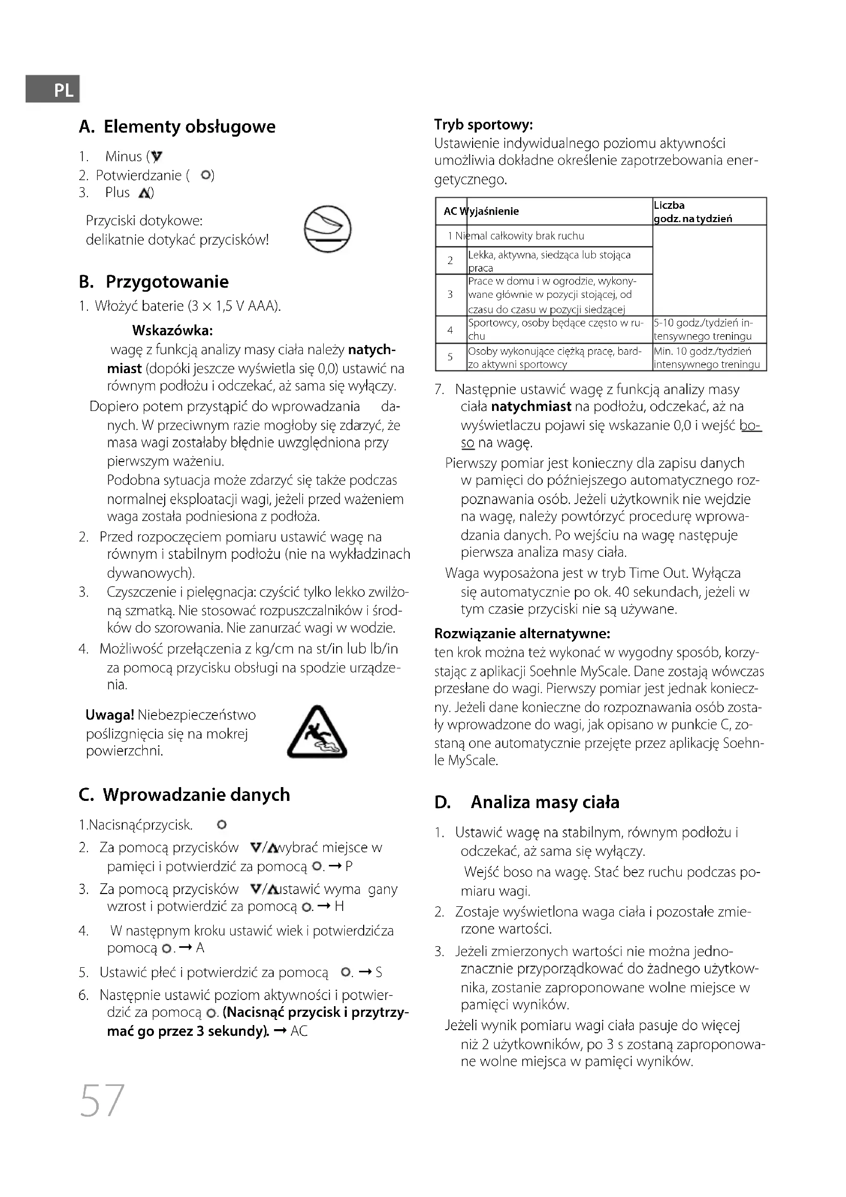 nia. Uwaga! Niebezpieczeństwo poślizgnięcia się na mokrej powierzchni. C. Wprowadzanie danych