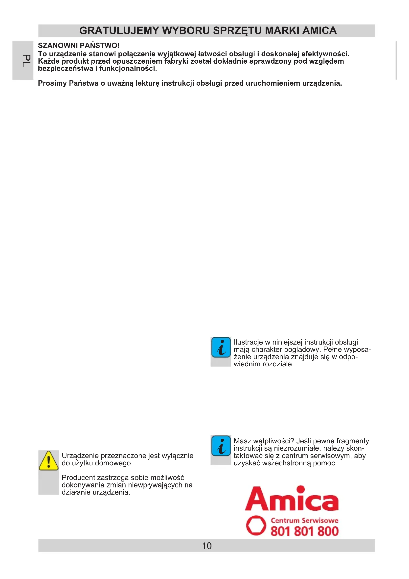 Tourządzeniestanowipołączeniewyjątkowejłatwościobsługiidoskonałejefektywności. Każdeproduktprzedopuszczeniemfabrykizostałdokładniesprawdzonypodwzględem bezpieczeństwaifunkcjonalności. ProsimyPaństwaouważnąlekturęinstrukcjiobsługiprzeduruchomieniemurządzenia. SZANOWNIPAŃSTWO! GRATULUJEMYWYBORUSPRZĘTUMARKIAMICA