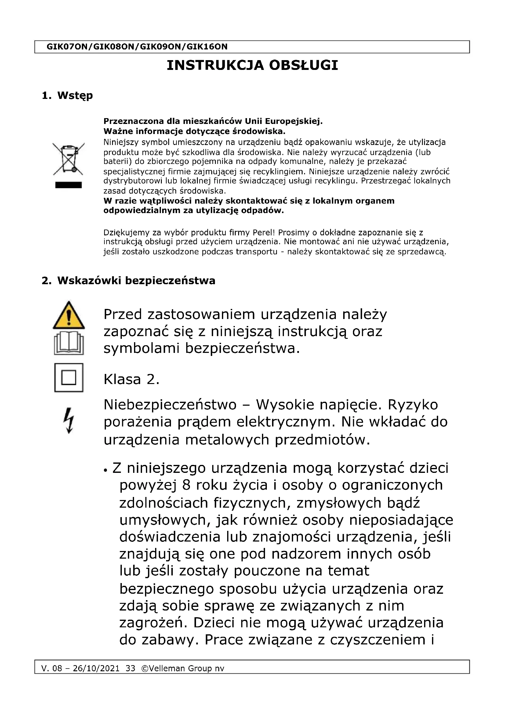 INSTRUKCJA OBSŁUGI GIK08ON Perel