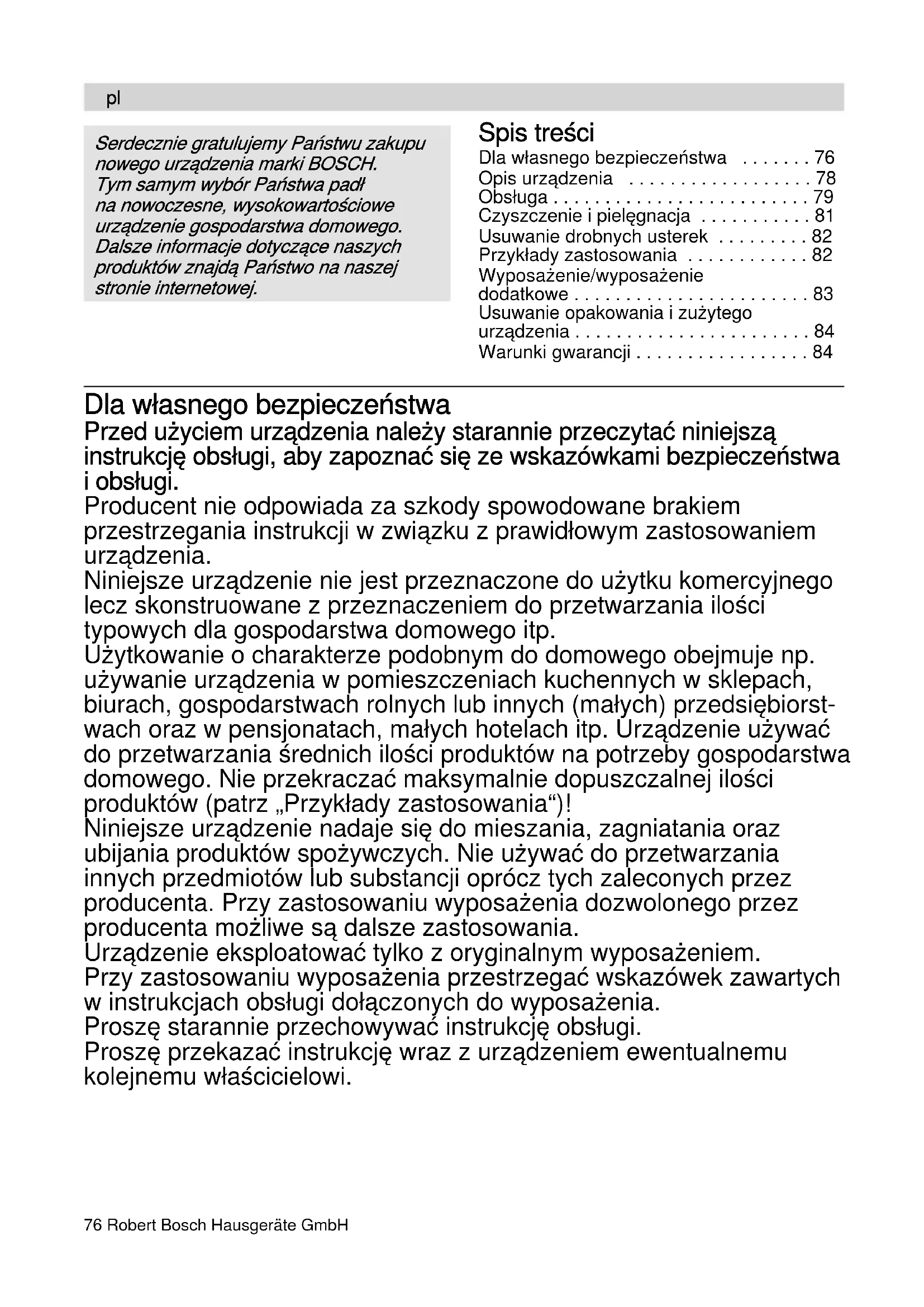- Oikeudet muutoksiin pidätetään.76 Robert Bosch Hausgeräte GmbH Spis treści Dla własnego bezpieczeństwa p. 76