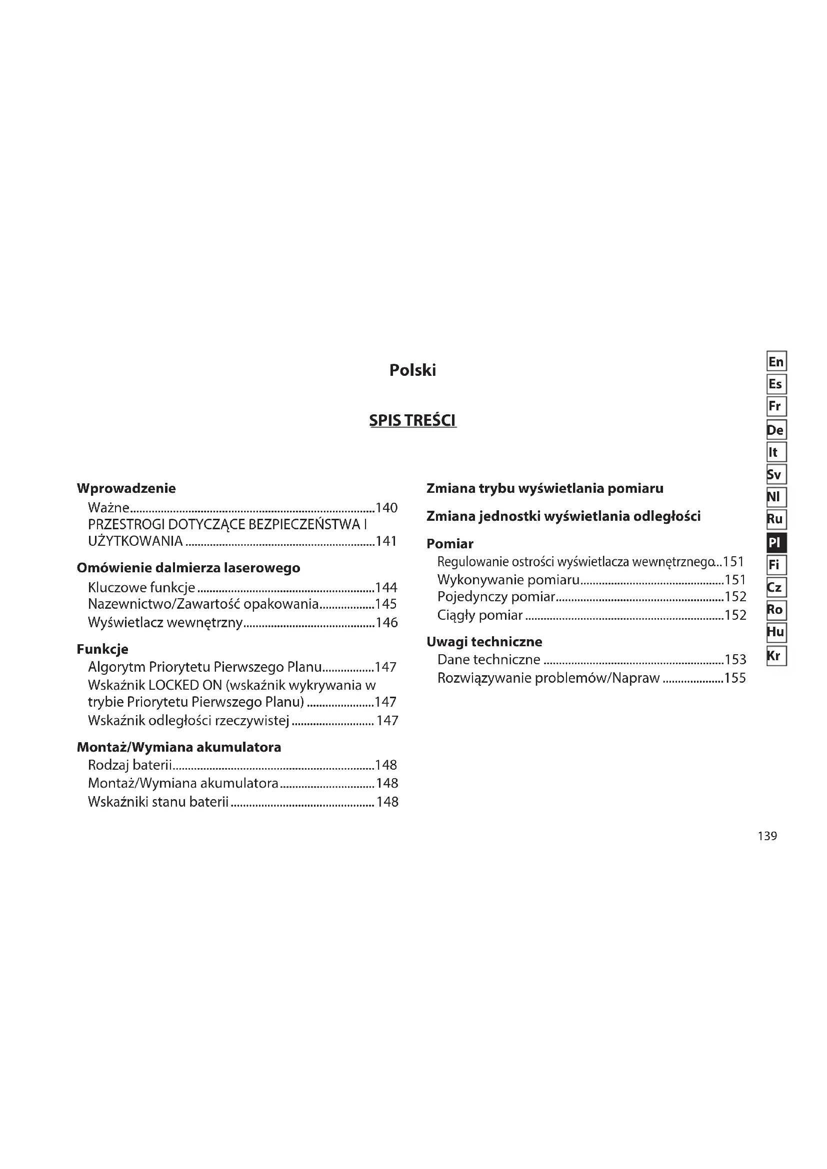 - Omówienie dalmierza laserowego Kluczowe funkcje p. 144