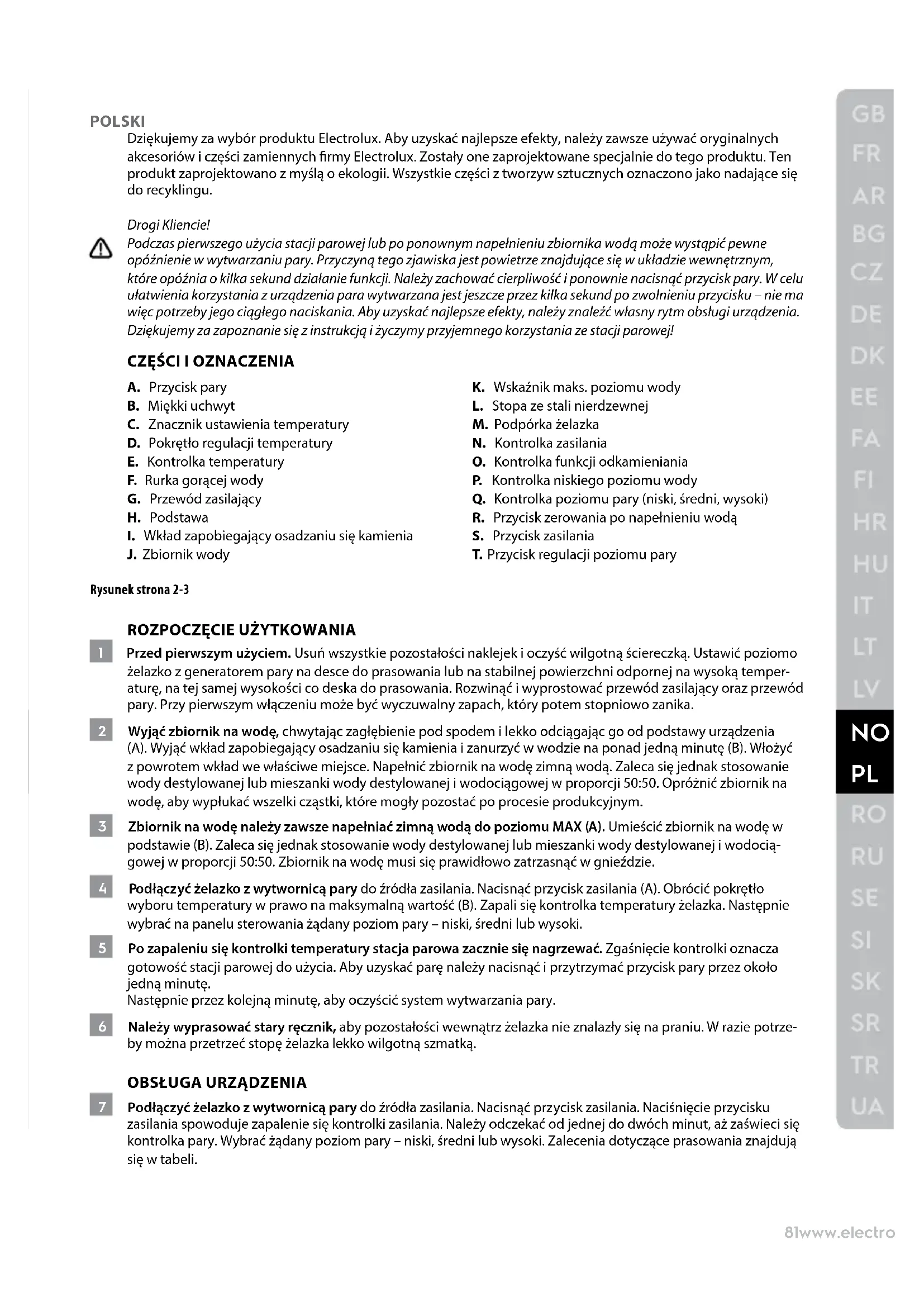 Dziekujemy za wybor produktu Electrolux. Aby uzyskać najepsze efekty,NSEZY zawsze uzywać oryginalnych akcesiorów i czeci zamiennych firmy Electrolux. Zostaly one zaprojektowane specjalnie do unto produktu. Ten produkt zaprojektowano z myslą o ekologii. Wszystkie czosci z tworzyw sztucznych oznaczono jako nadajace są do recycl Klingu.