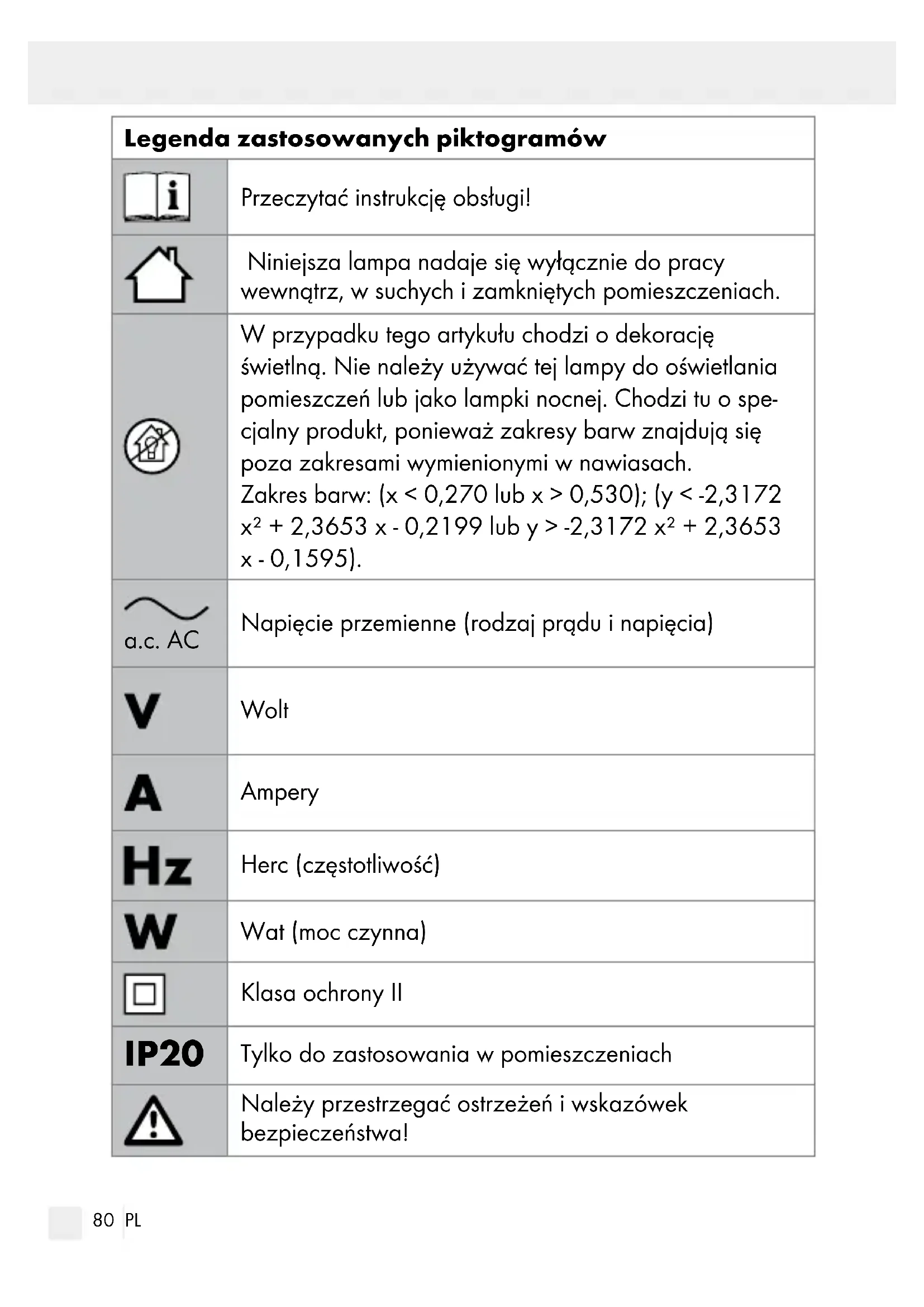 Opakowanie i urządzenie przekazać do utylizacji zgodnie z przepisami o ochronie środowiska!82 PL Legenda zastosowanych piktogramów