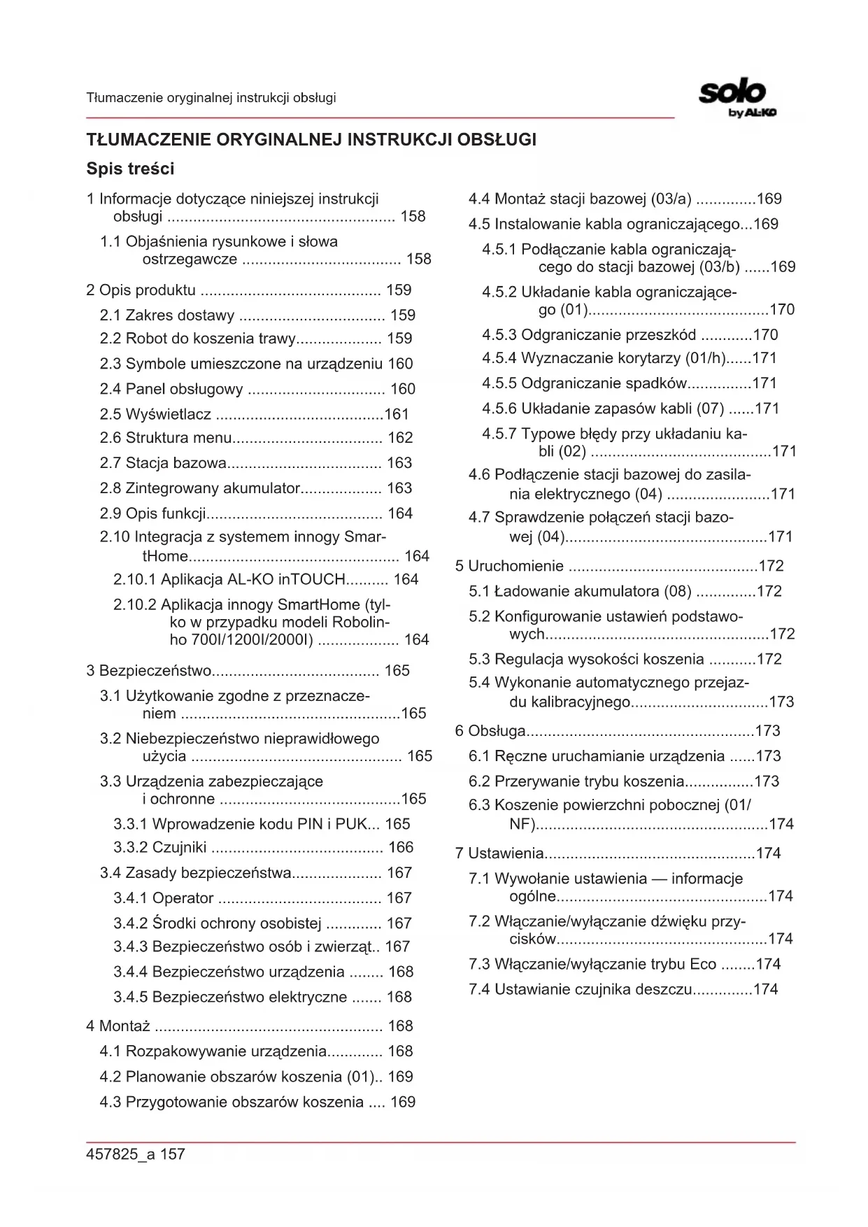 ko w przypadku modeli Robolin- ho 700I/1200I/2000I) ................... 164 3 Bezpieczeństwo....................................... 165