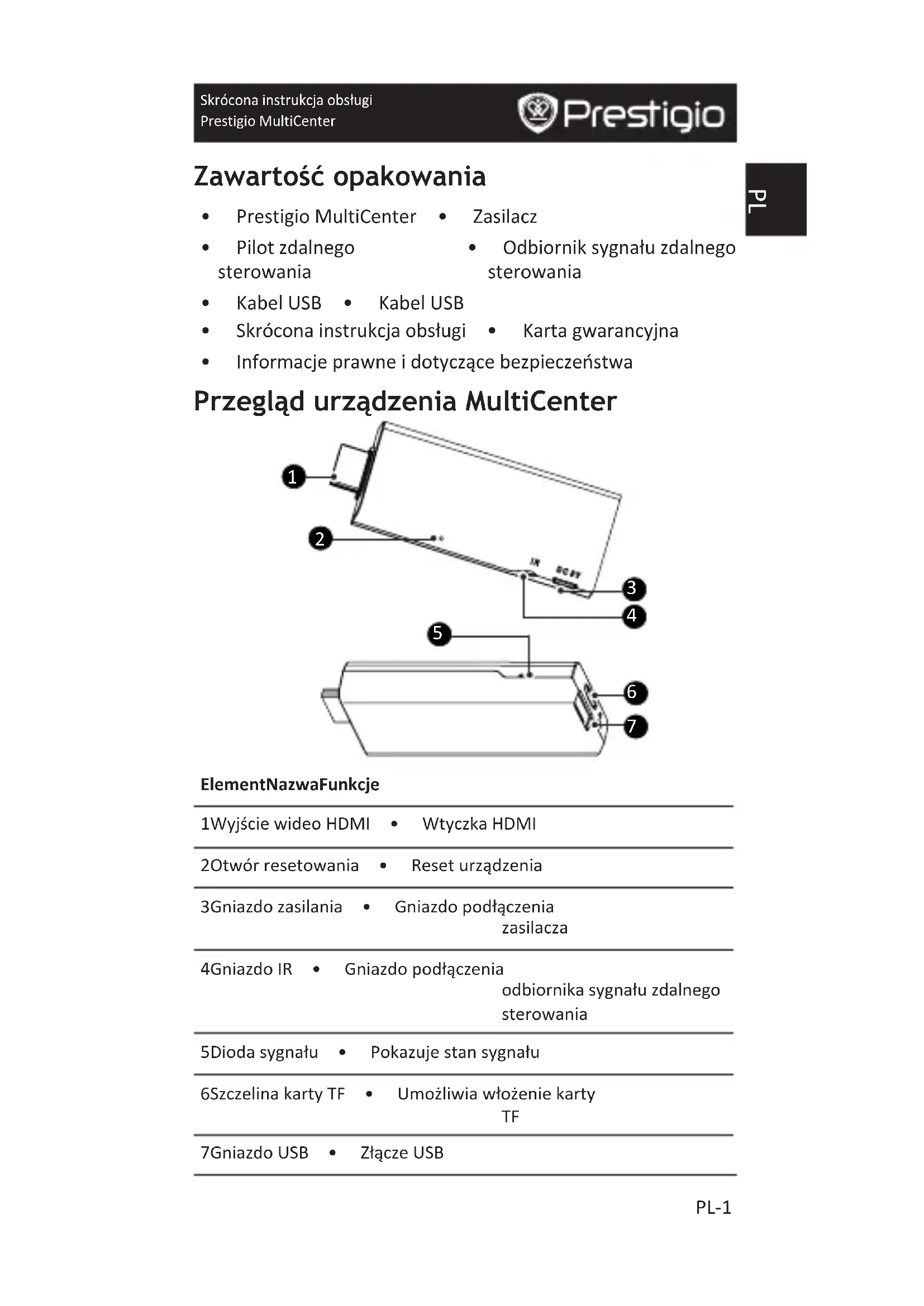 Pobierz instrukcję dla swojego Dongle w formacie PDF za darmo! Znajdź swoją instrukcję MultiCenter PAD2411 - PRESTIGIO i weź swoje urządzenie elektroniczne z powrotem w ręce. Na tej stronie opublikowane są wszystkie dokumenty niezbędne do korzystania z urządzenia. MultiCenter PAD2411 marki PRESTIGIO.
