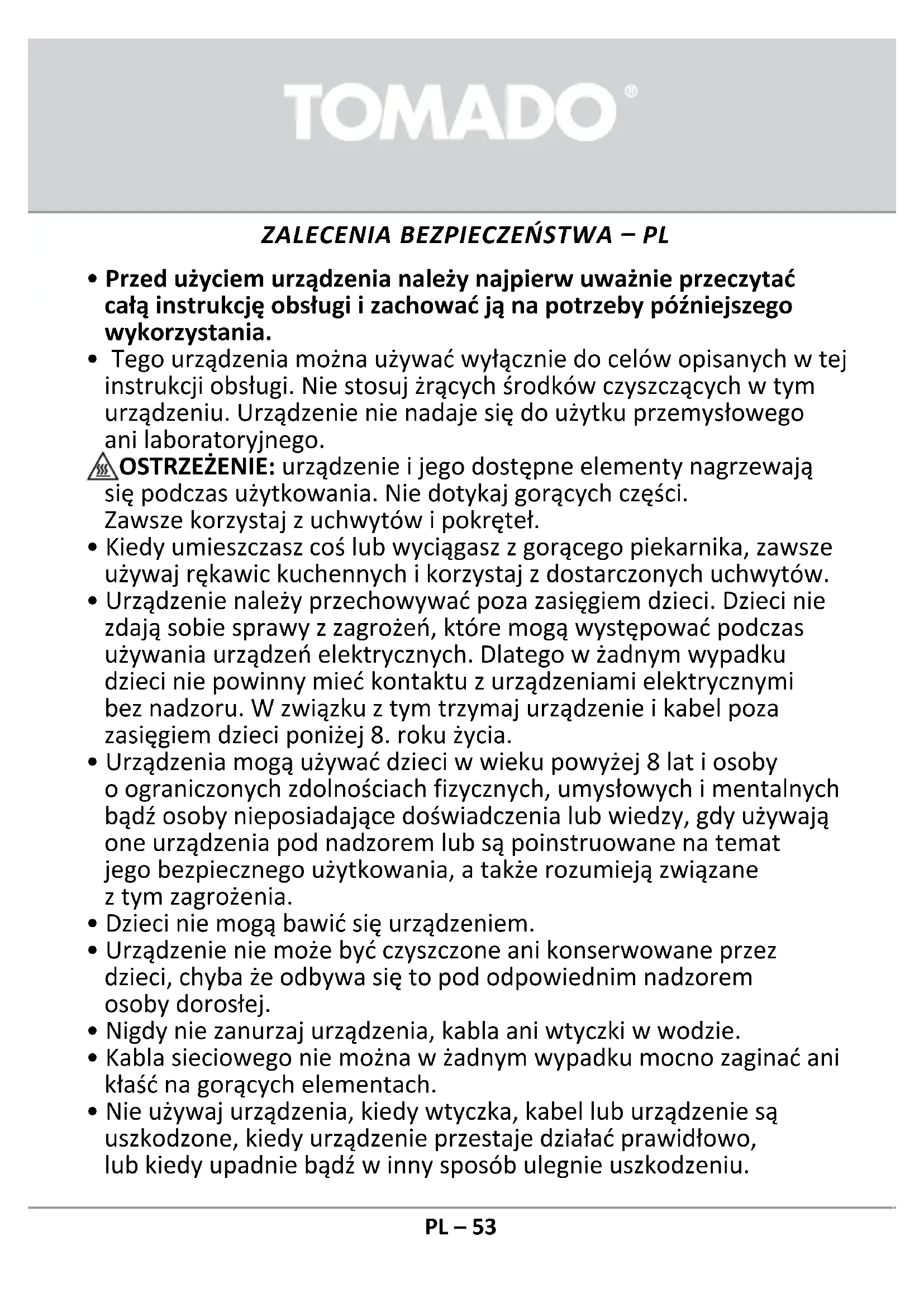 TEO4500S - Piekarnik Tomado - Bezpłatna instrukcja obsługi