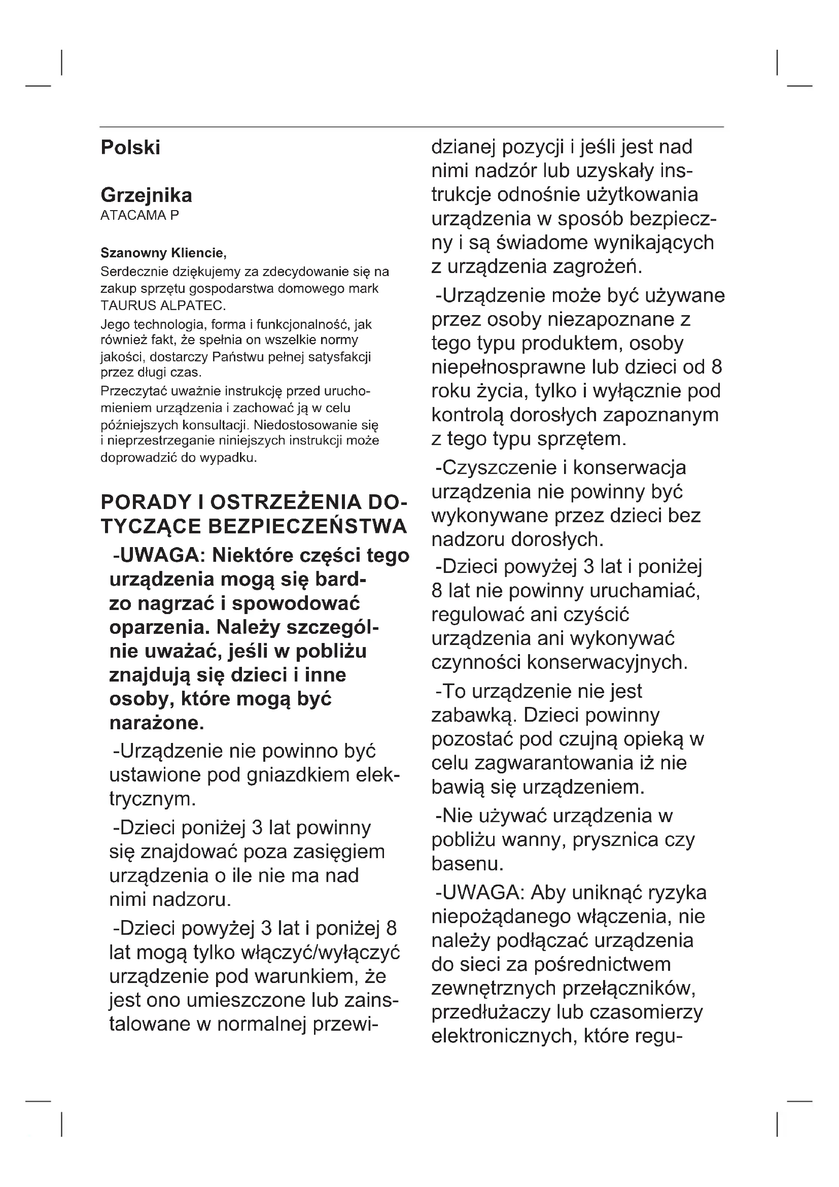 Atacama P - Ogrzewanie TAURUS - Bezpłatna instrukcja obsługi
