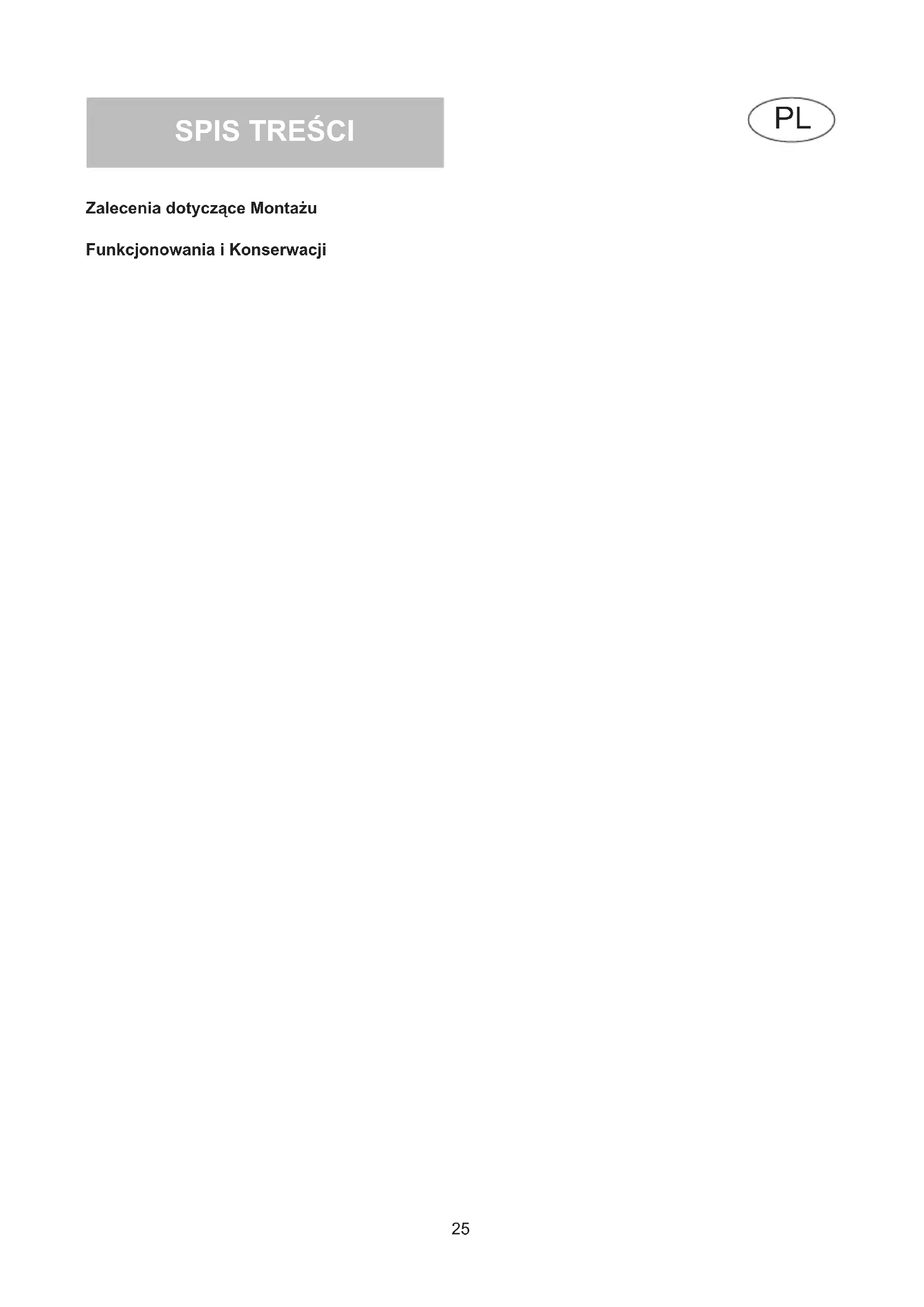 Zalecenia dotyczące Montażu Funkcjonowania i Konserwacji