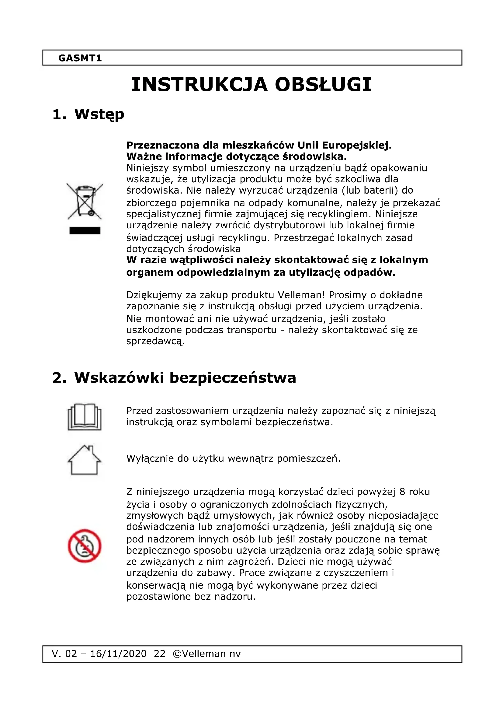 INSTRUKCJA OBSŁUGI GASMT1 VELLEMAN