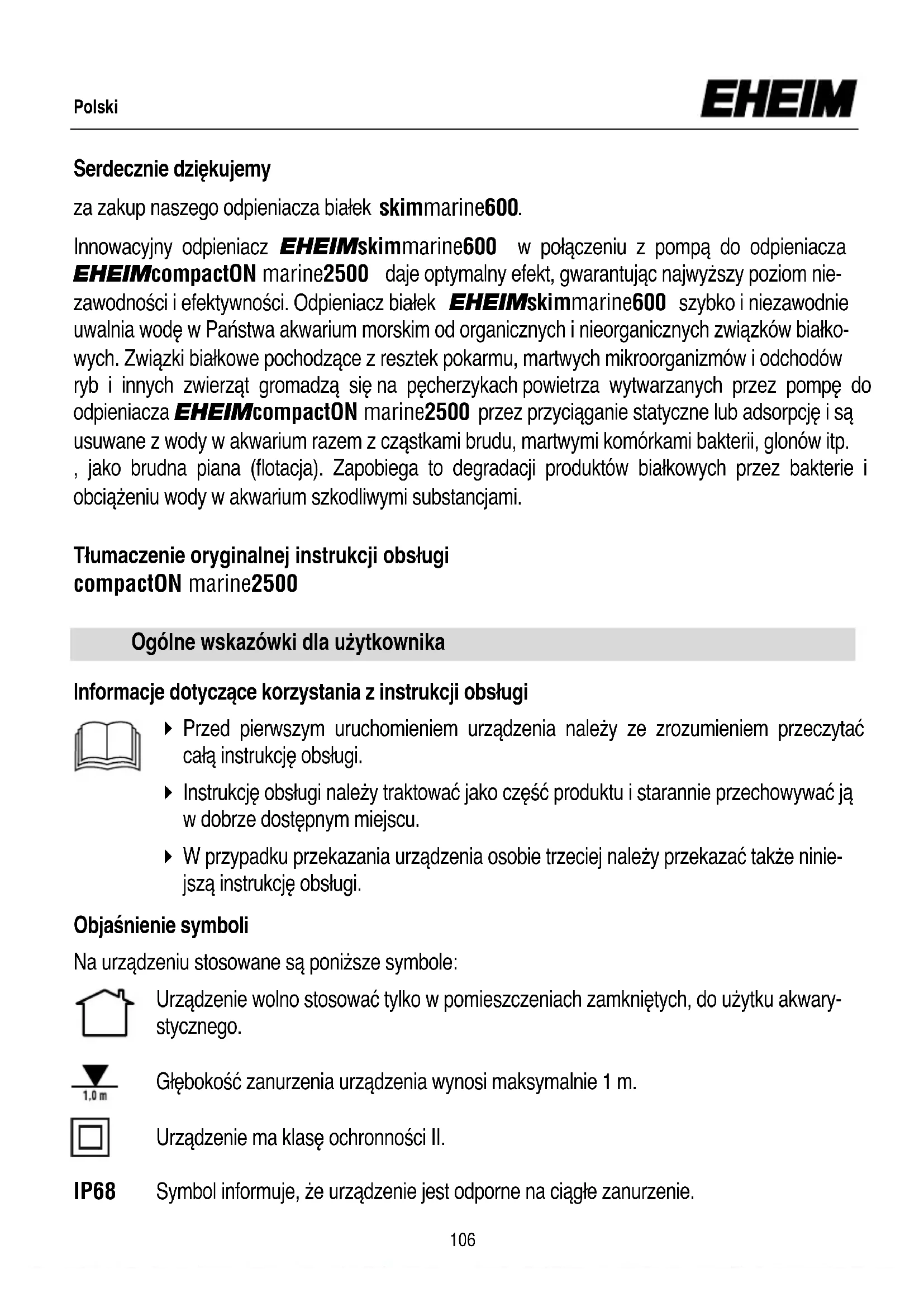 INSTRUKCJA OBSŁUGI skimmarine 600 EHEIM