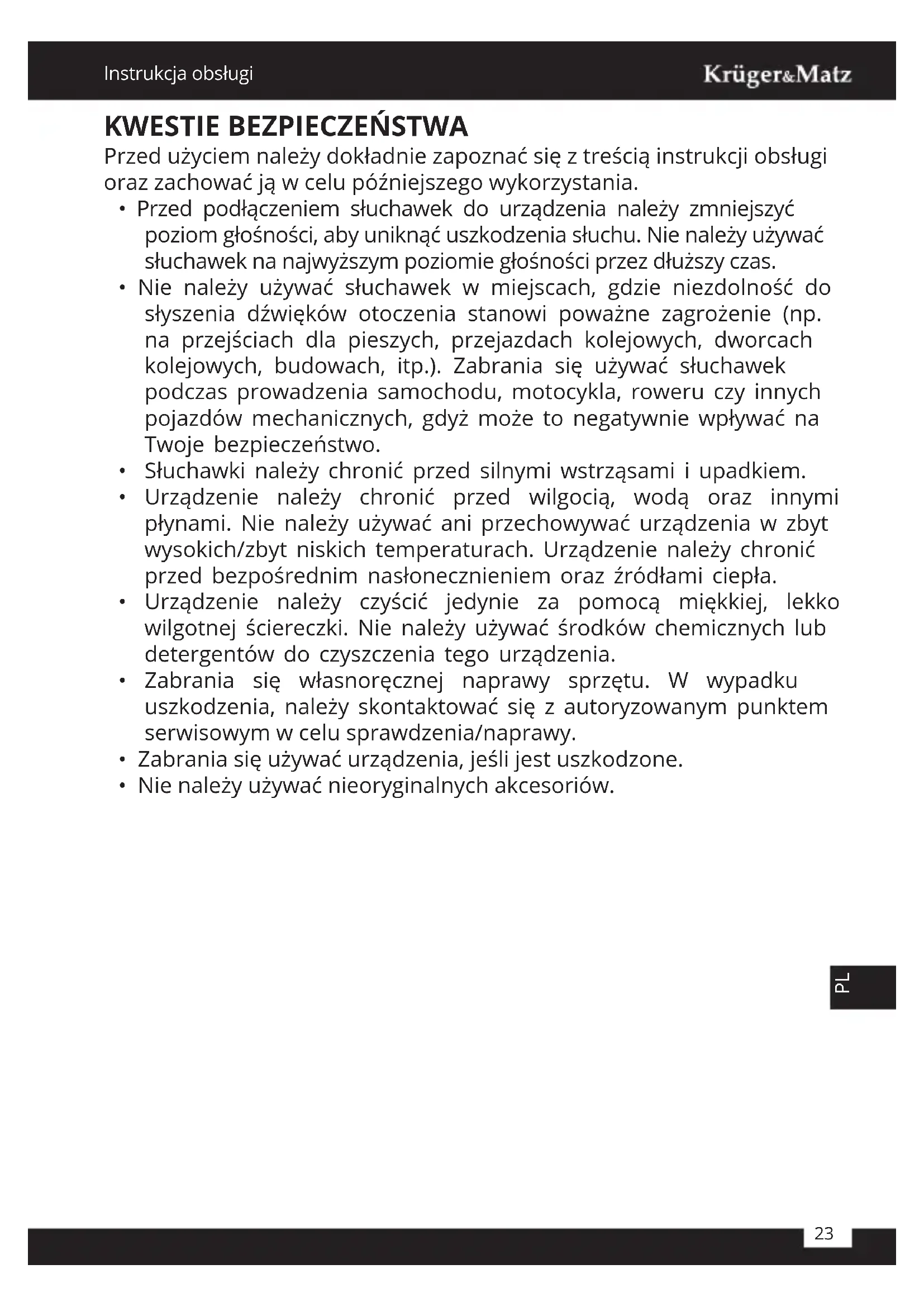 INSTRUKCJA OBSŁUGI Street Kids KM0656 Krüger&Matz