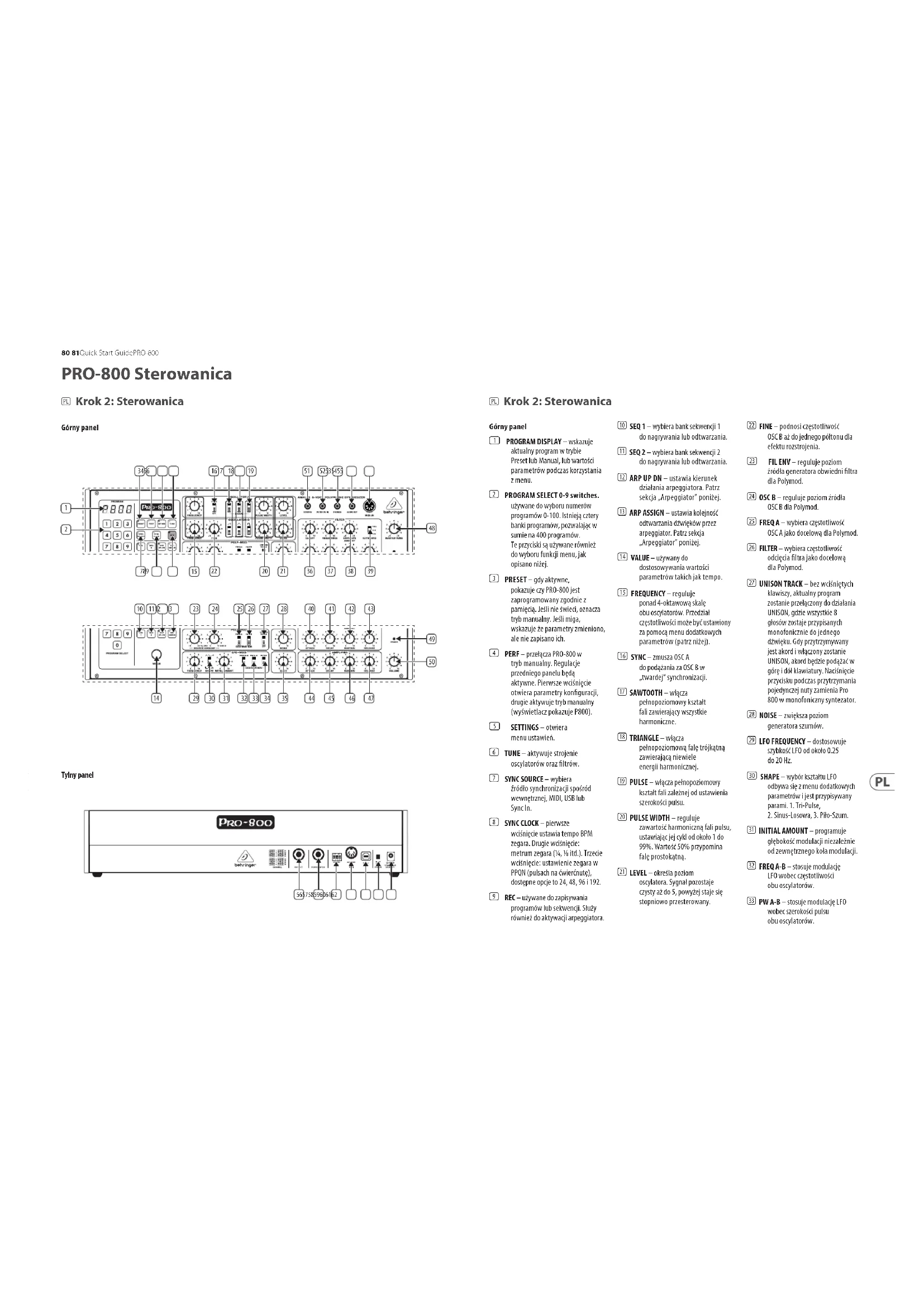 PRO800 - Syntezator BEHRINGER - Bezpłatna instrukcja obsługi