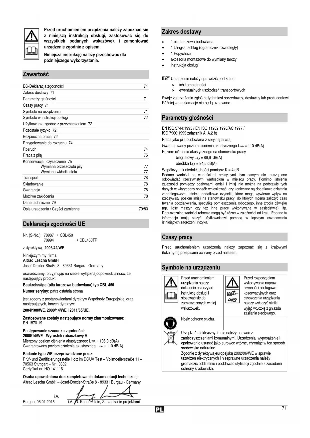 CBL 450 - Piła Lescha - Bezpłatna instrukcja obsługi