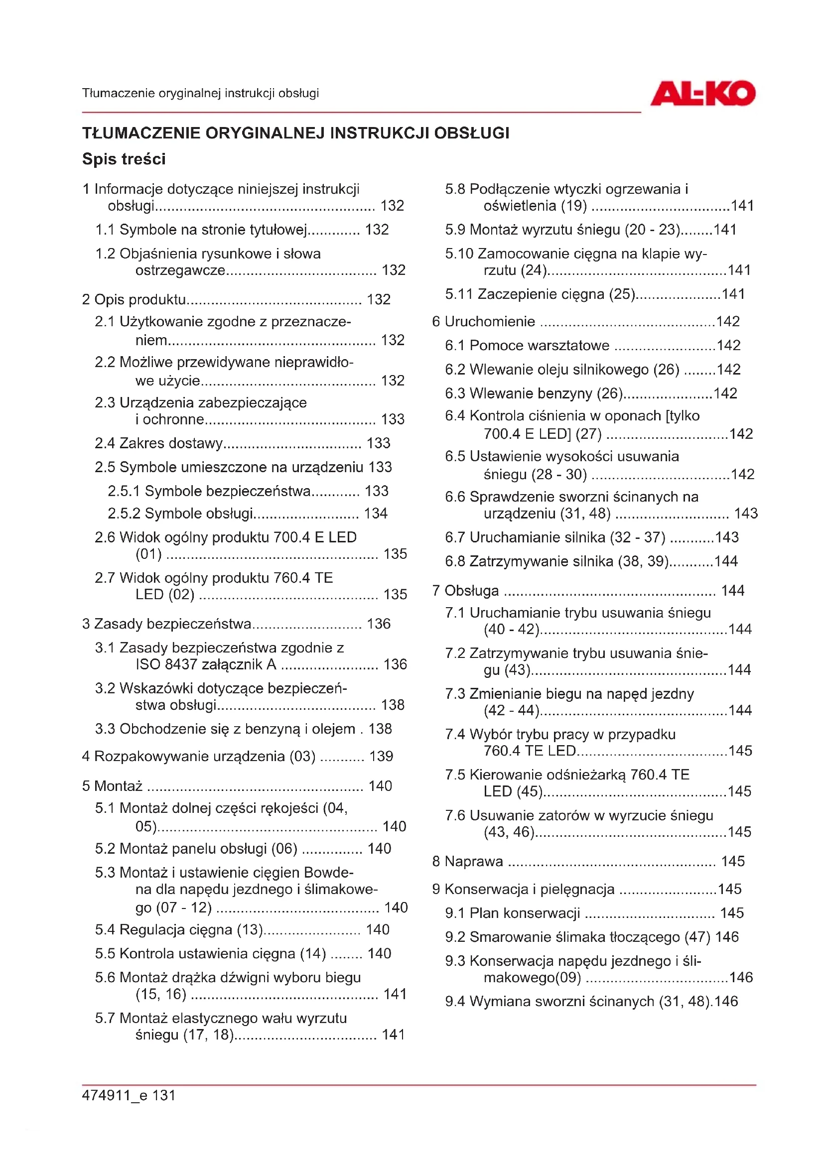 132 SnowLine 700.4 E LED | SnowLine 760.4 TE LED Informacje dotyczące niniejszej instrukcji obsługi