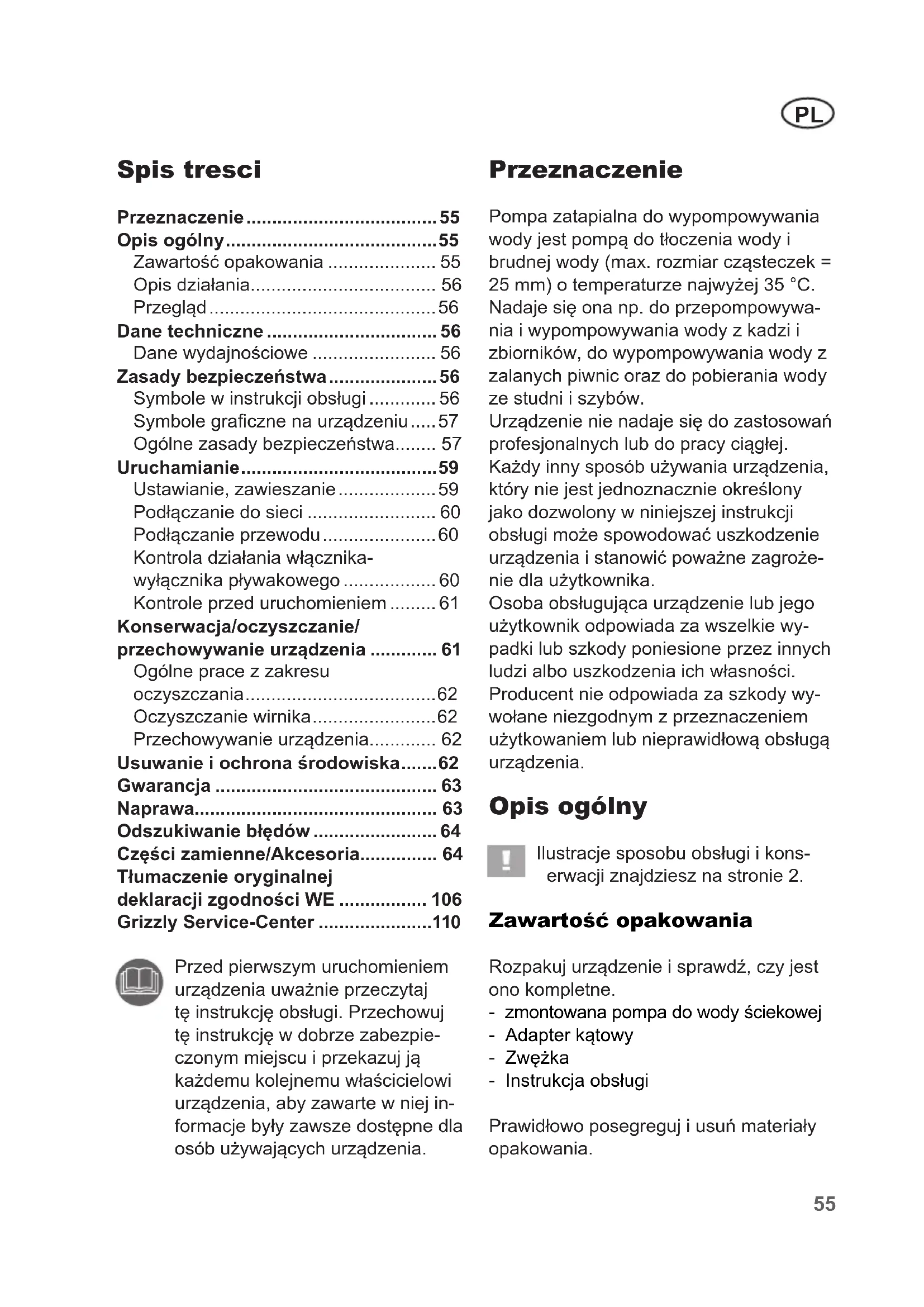 Wszystkie wykraczajace poza ten zakres czynnosci, a szczególnie otwieranie pompy, musza byc wykonywane przyż wykwalifikowanego elektryka. Jeźeli urzadzenia wymaga naprawy, zwracaj sie zawsze do naszego Centrum Serwisowej.