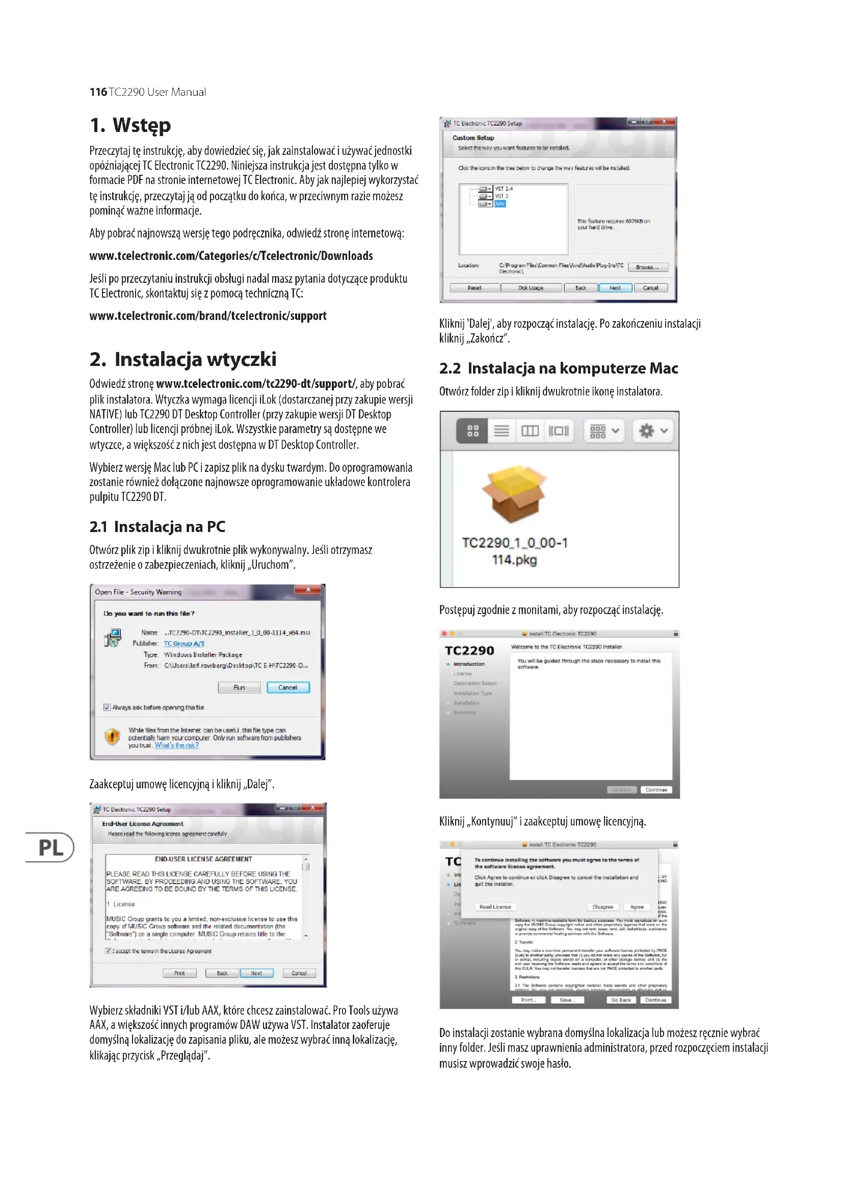 Przeczytaj te instrukcje, aby dowiedziec sie, jak zaintalowac i uzywac jegnostki opozniajaczej TC Electronic TC2290. Niniejsza instrukcja jest dostepna tylko w formacie PDF na stronie internetowej TC Electronic. Aby jak najlepiej wykorztacja te instrukcje, przyceczytaj ja od poucharu do konca, w przyciwnym razie mozes pominoć wazne informacja.