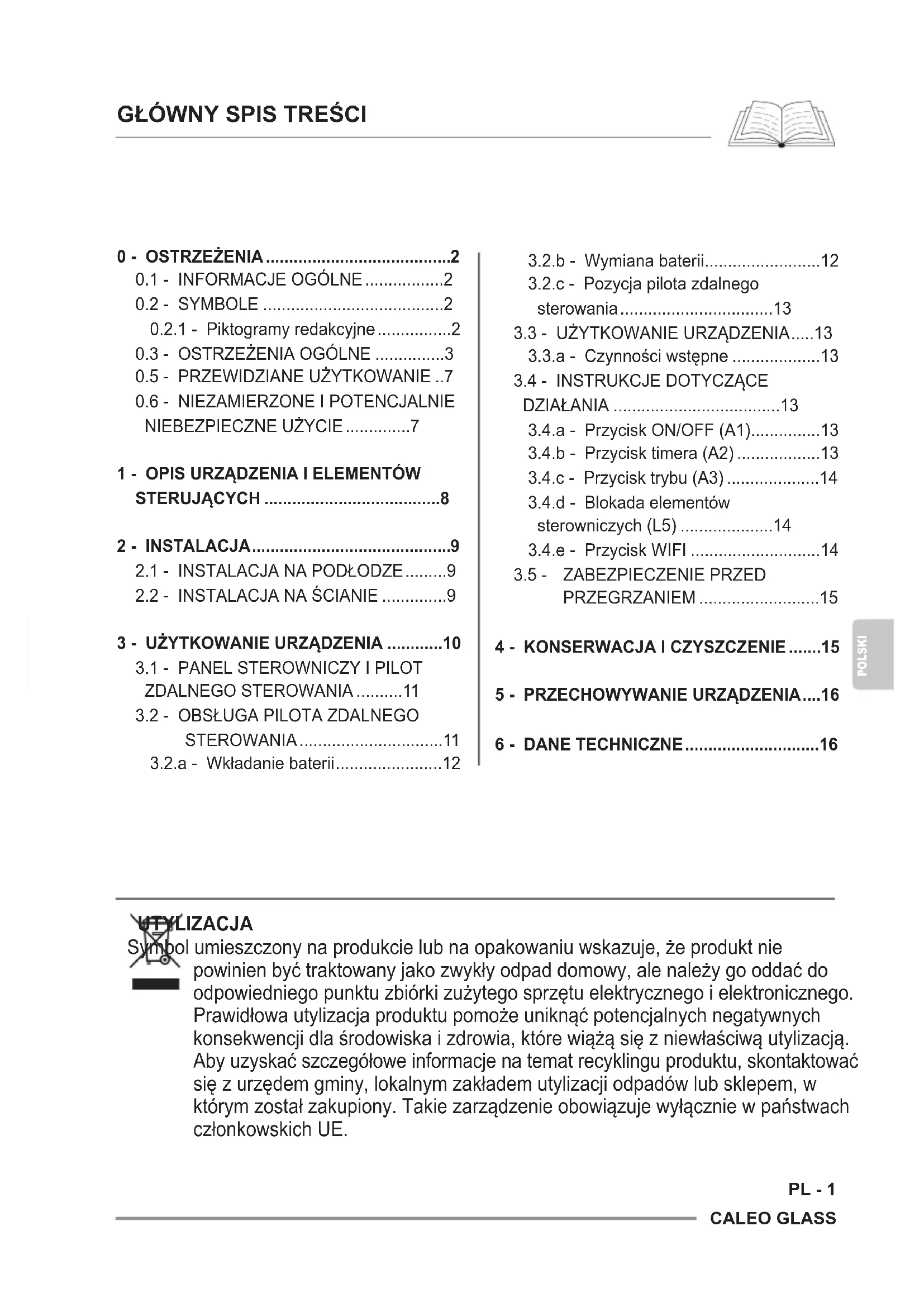 Nie używać urządzenia, jeśli jest ono wadliwe lub działa nieprawidłowo, jeśli kabel lub wtyczka są uszkodzone, po upadku lub w przypadku jakiegokolwiek uszkodzenia. Wy-CALEO GLASS POLSKI PL - 7 łączyć urządzenie, wyjąć wtyczkę z gniazdka i zlecić spraw- dzenie przez profesjonalnie wykwalikowany personel.