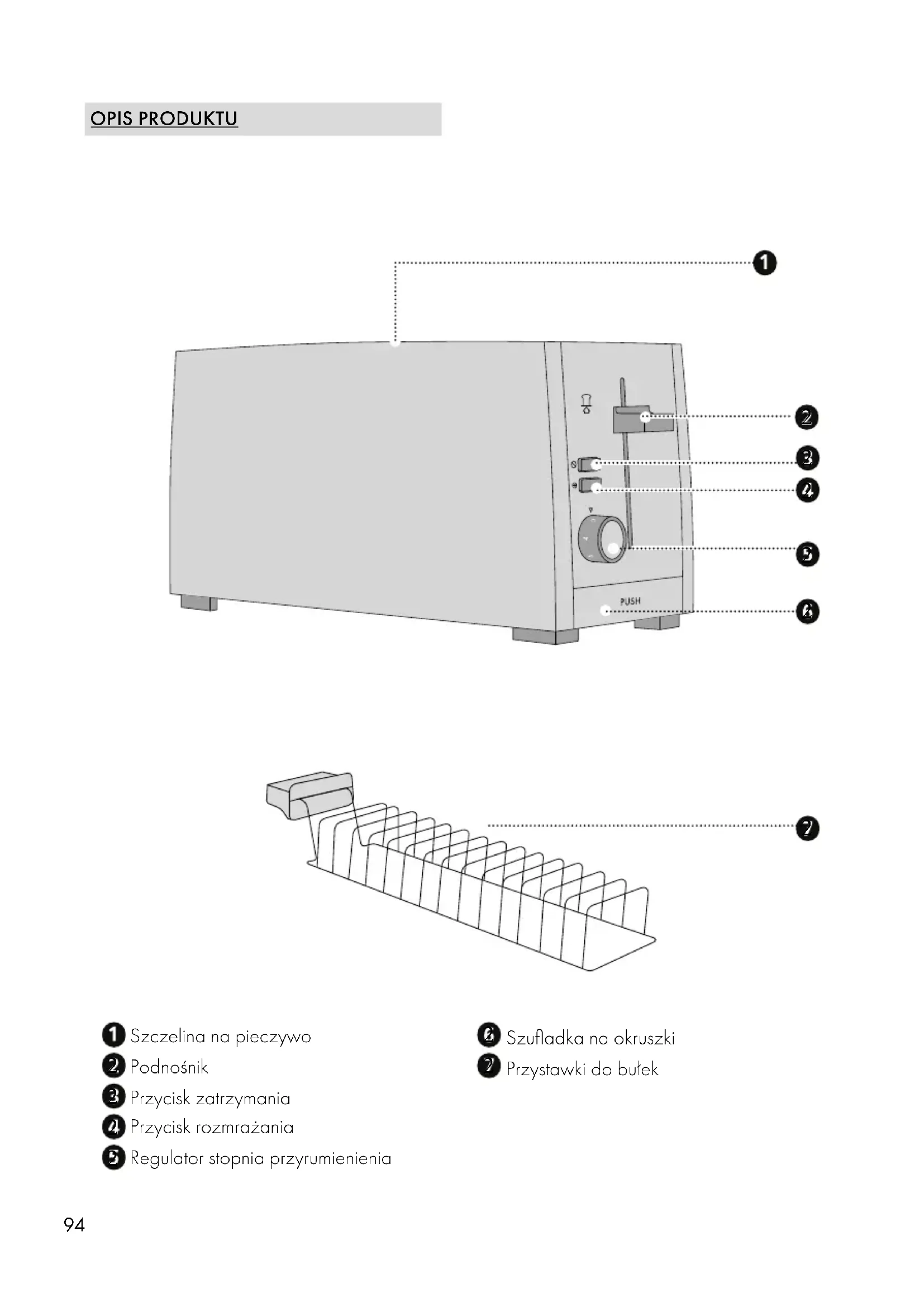 Niniejsza instrukcja obstugi jest czescią składowy tostera (zwanego dalej urzędzieniem) i za-wiera wȩne informacja dotycznych uruchomienia, bezpieczność, prawidowej uzytkowyania i konserwacje urzędzenia.