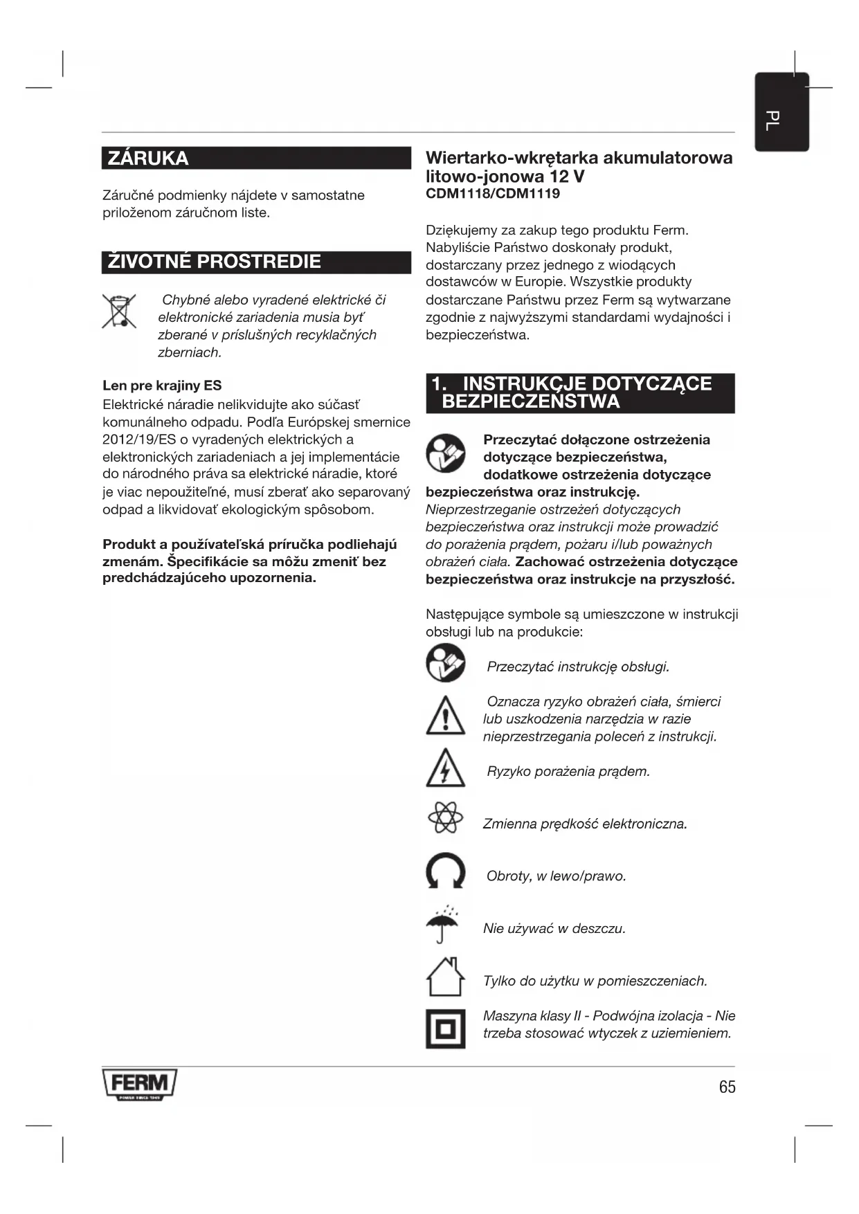 CDM1119 - Wiertarka Ferm - Bezpłatna instrukcja obsługi