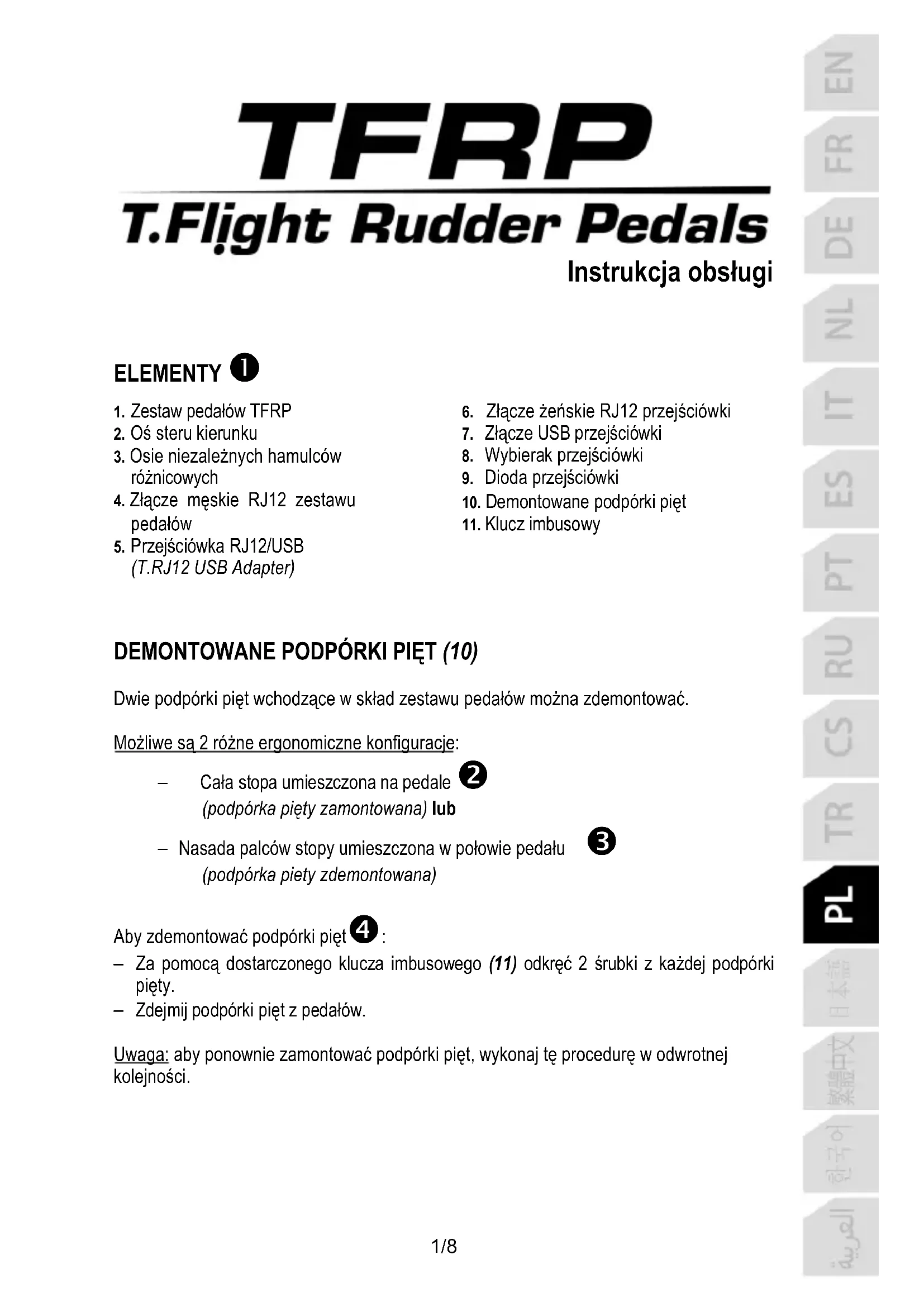 INSTRUKCJA OBSŁUGI TFRP TFlight Rudder Pedals THRUSTMASTER
