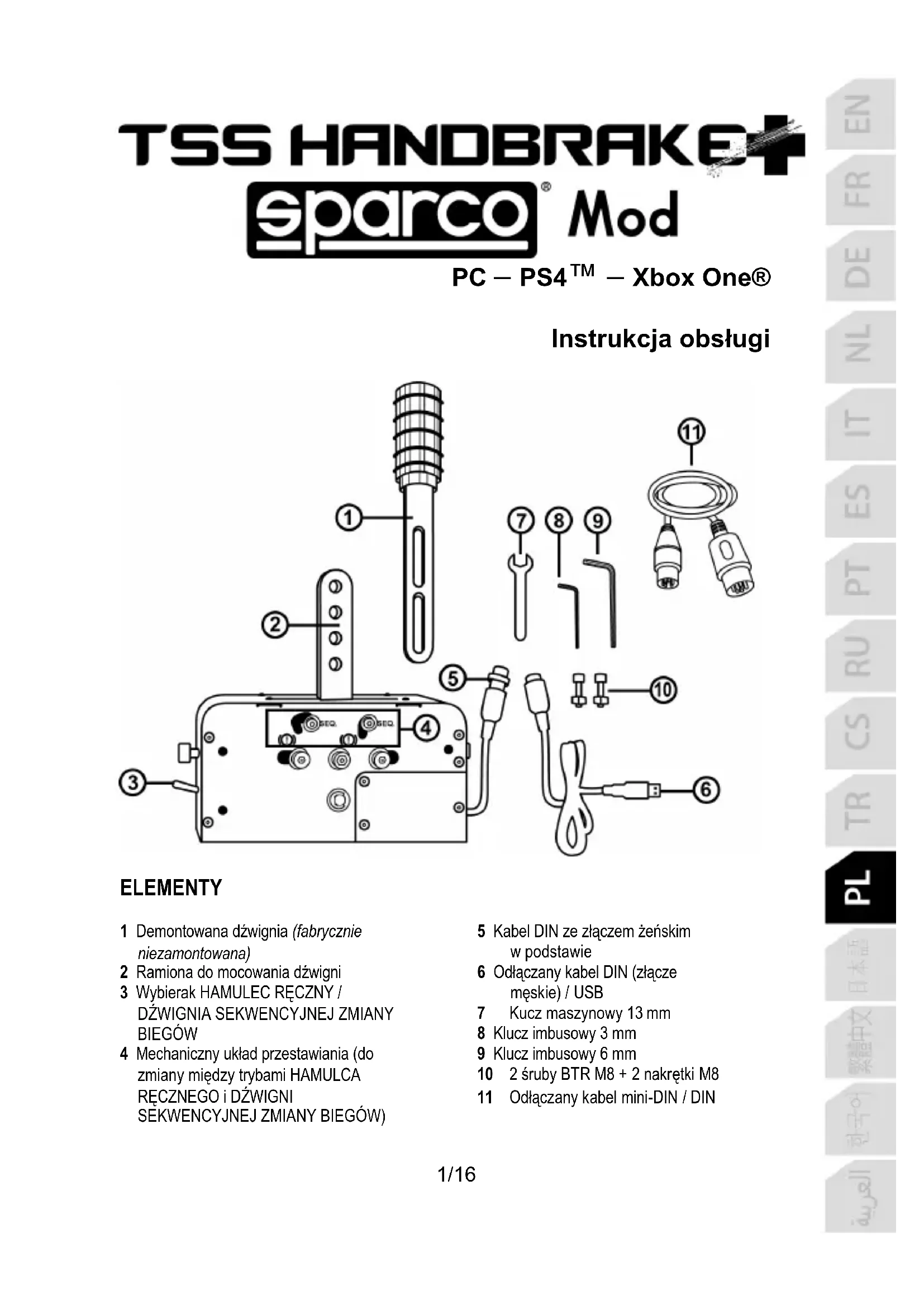 INSTRUKCJA OBSŁUGI TSS Handbrake+ Sparco Mod THRUSTMASTER