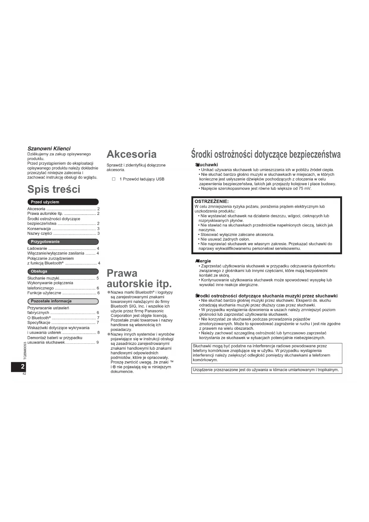 RPHF400B - Słuchawki PANASONIC - Bezpłatna instrukcja obsługi