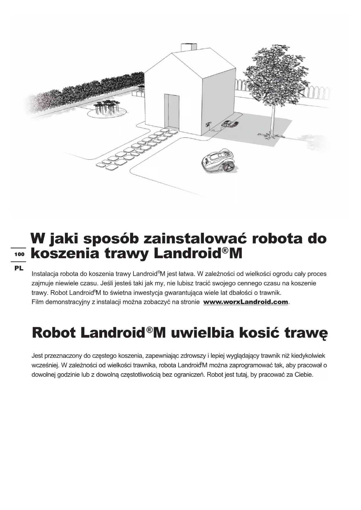 M to świetna inwestycja gwarantująca wiele lat dbałości o trawnik. Film demonstracyjny z instalacji można zobaczyć na stronie www.worxLandroid.com. Robot Landroid