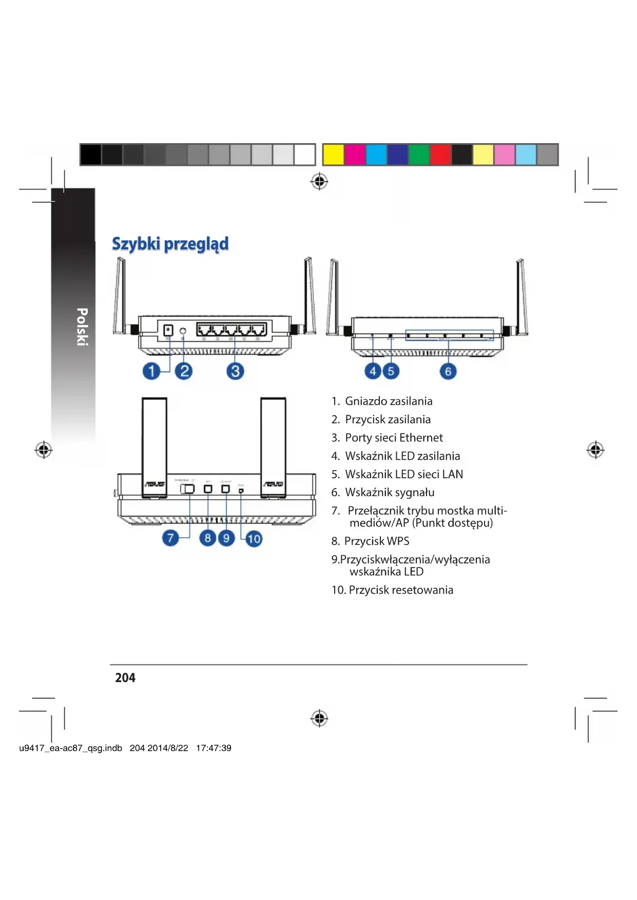 - System Windows® XP nie obsługuje adresu ndasus.local. Jeśli korzystasz z systemu operacyjnego Windows® XP, pobierz narzędzie odnajdywania urządzenia z witryny rmy ASUS www.asus.com, aby znaleźć adres IP urządzenia EA-AC87. u9417_ea-ac87_qsg.indb 214 2014/8/22 17:47:43Polski