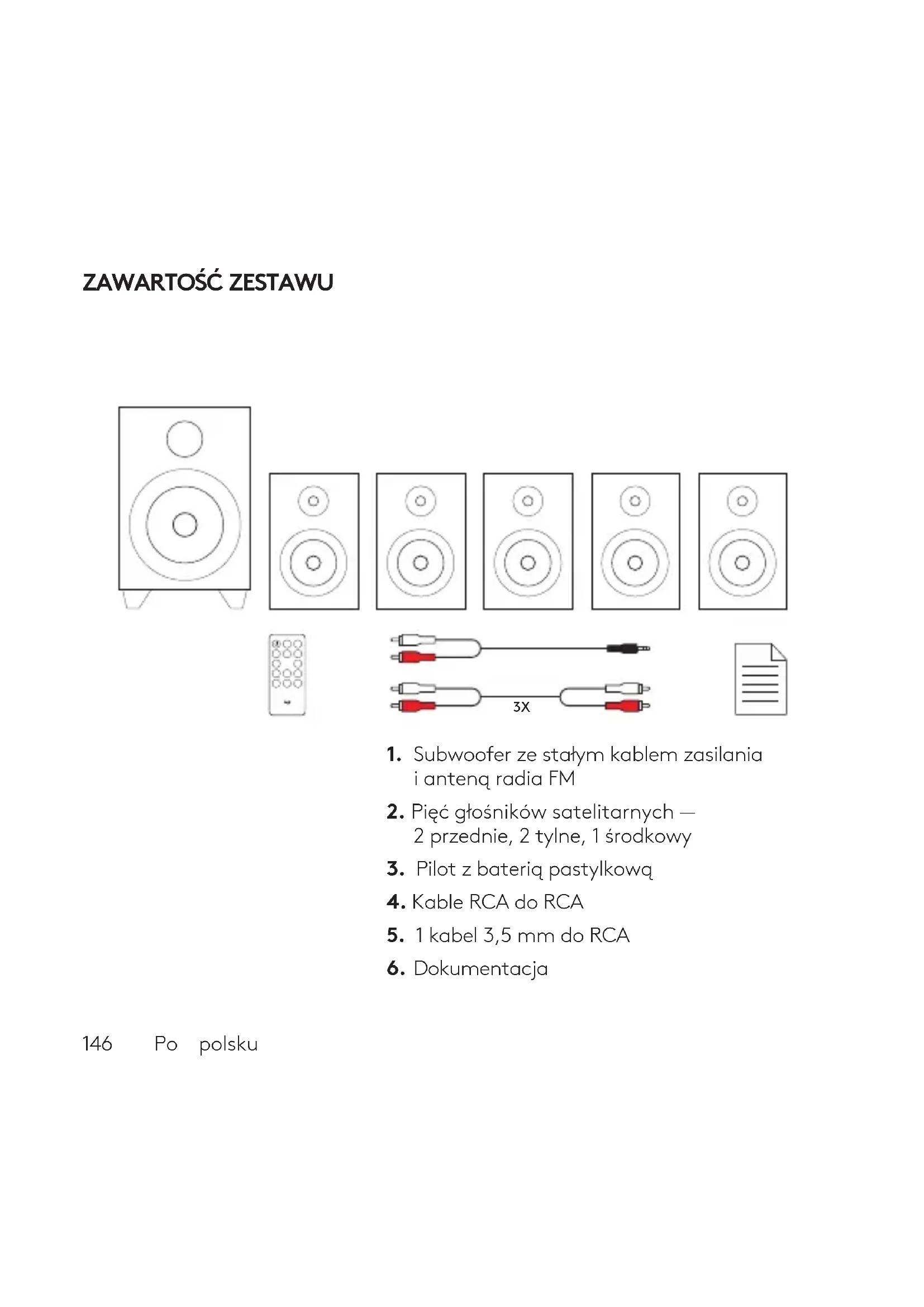2. Pięć głośników satelitarnych —