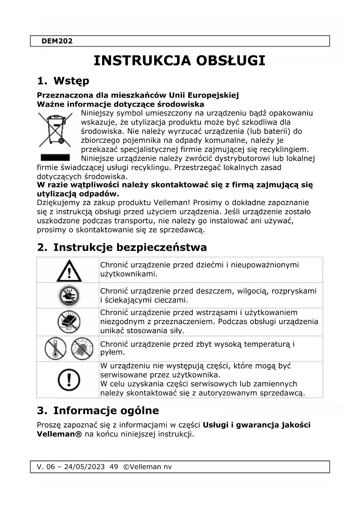 INSTRUKCJA OBSŁUGI DEM202 VELLEMAN