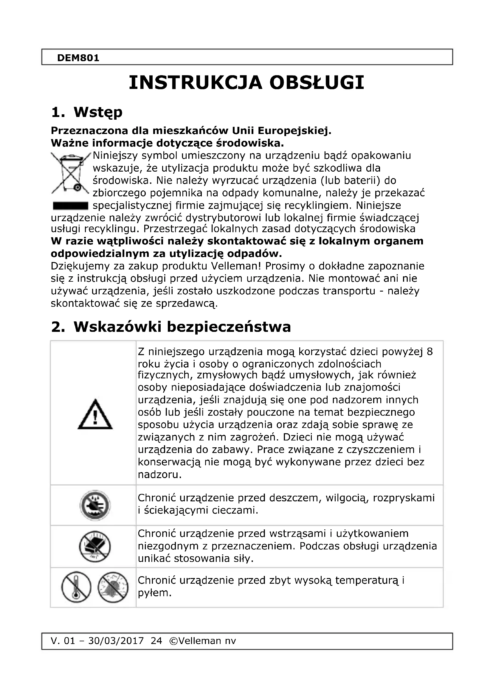 INSTRUKCJA OBSŁUGI DEM801 VELLEMAN